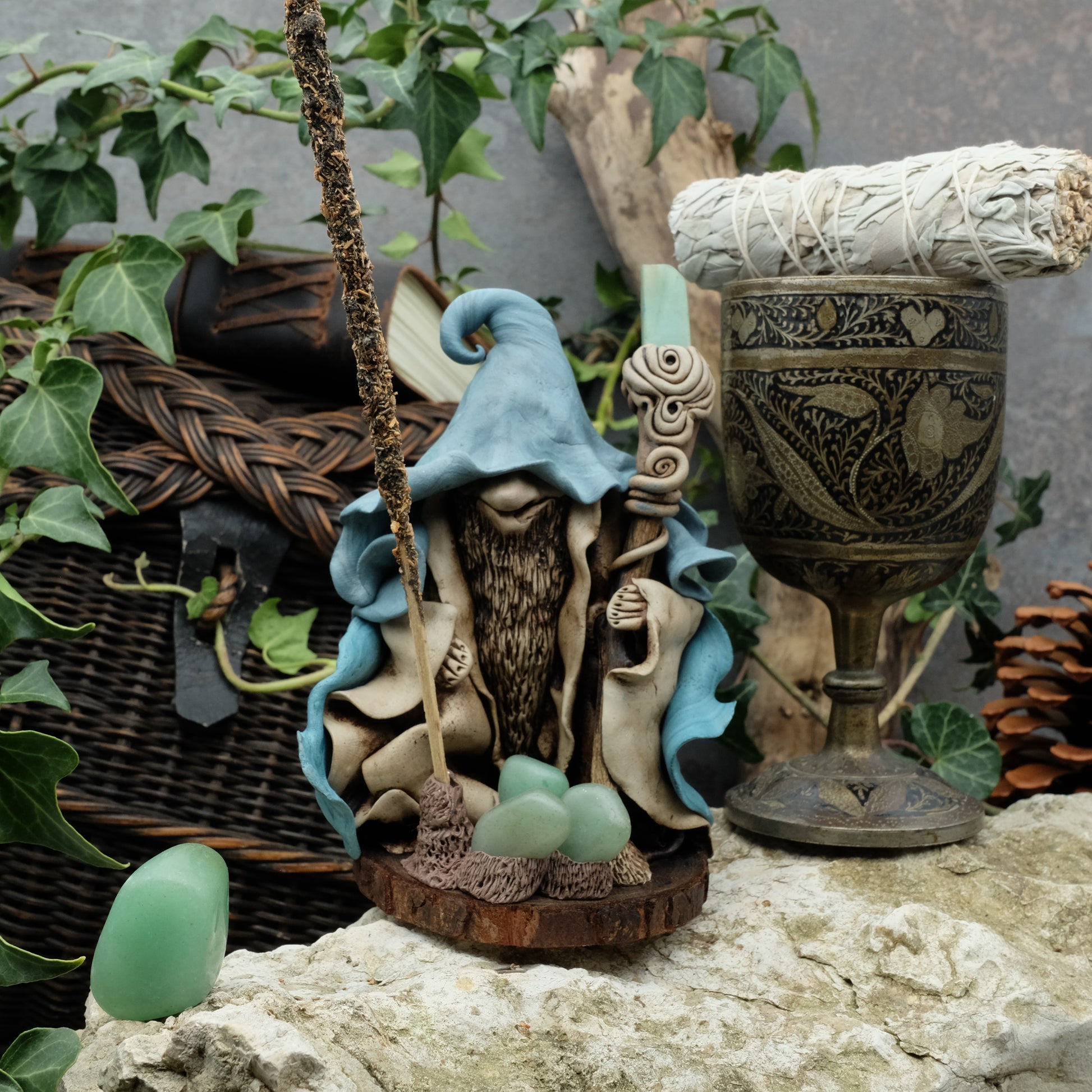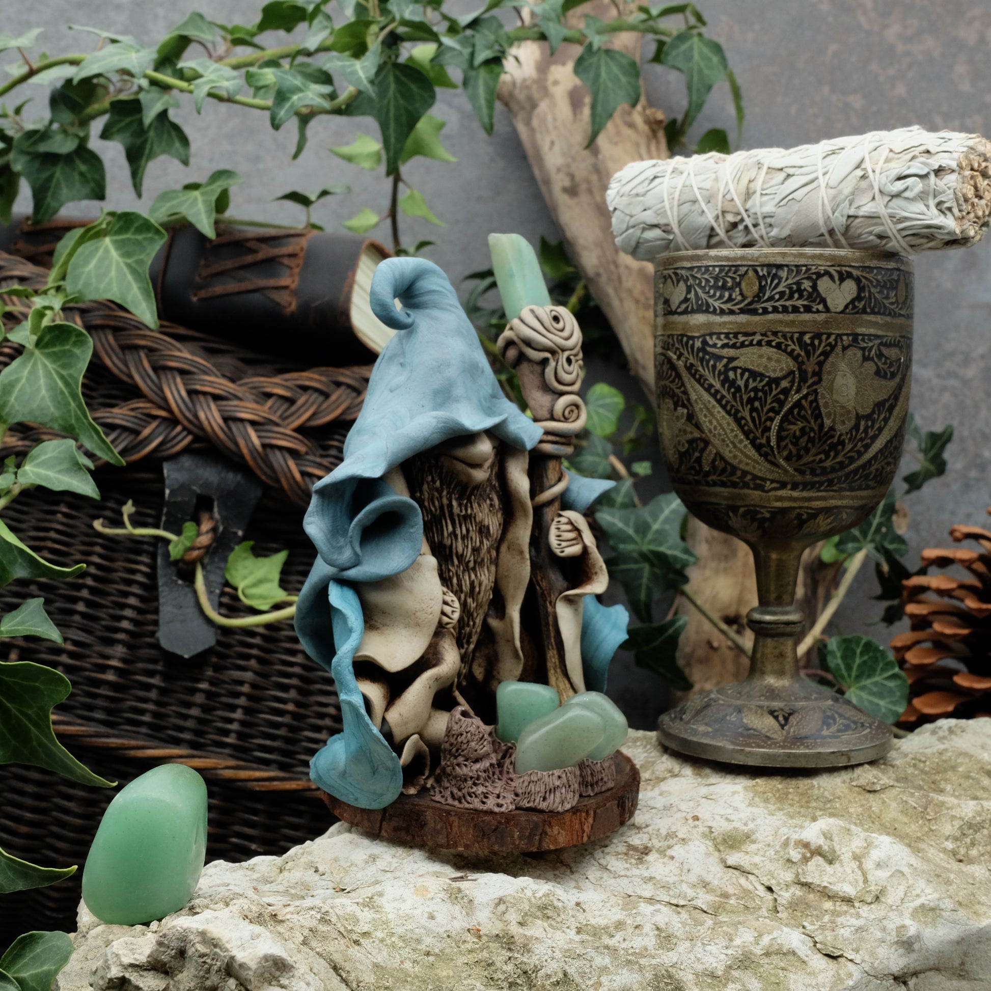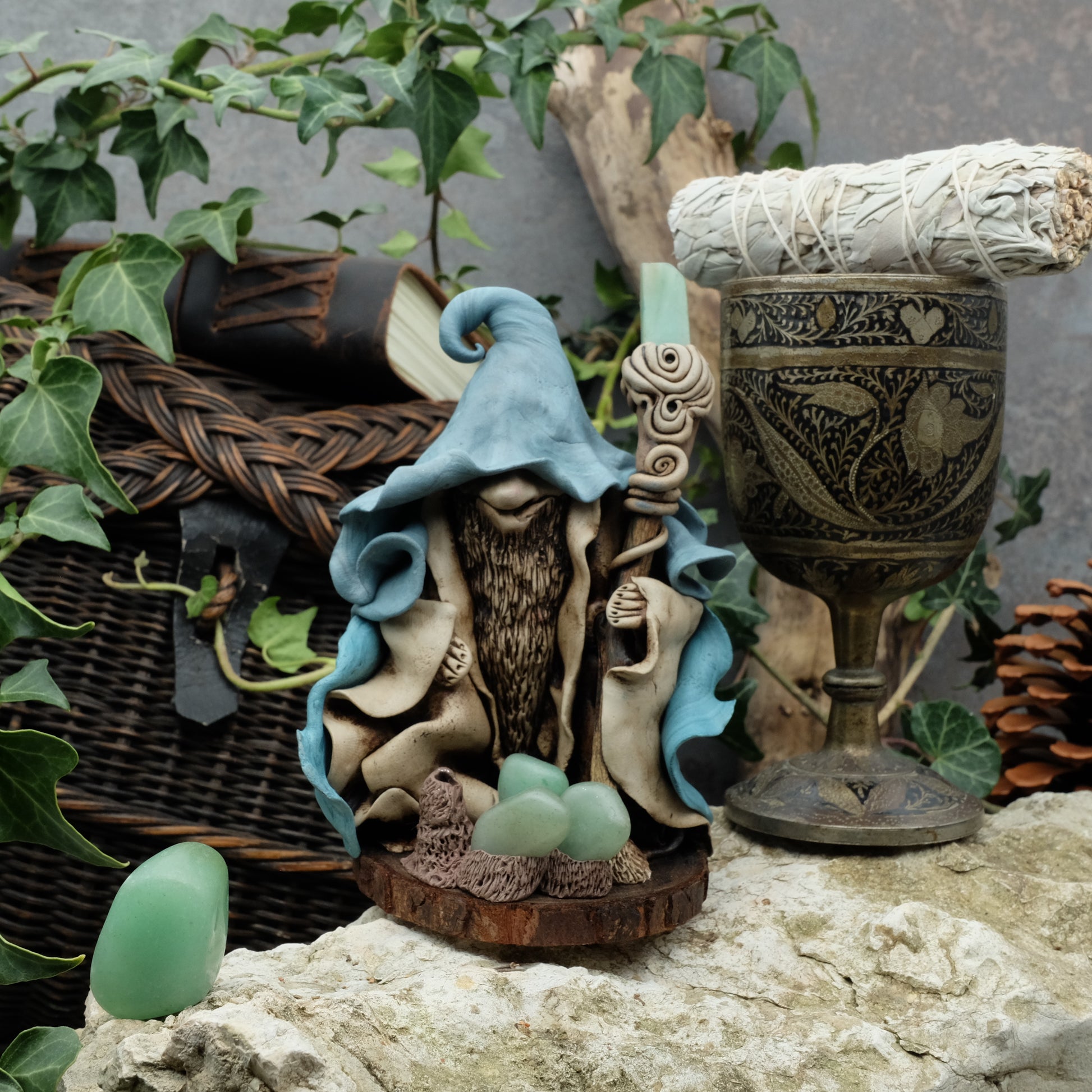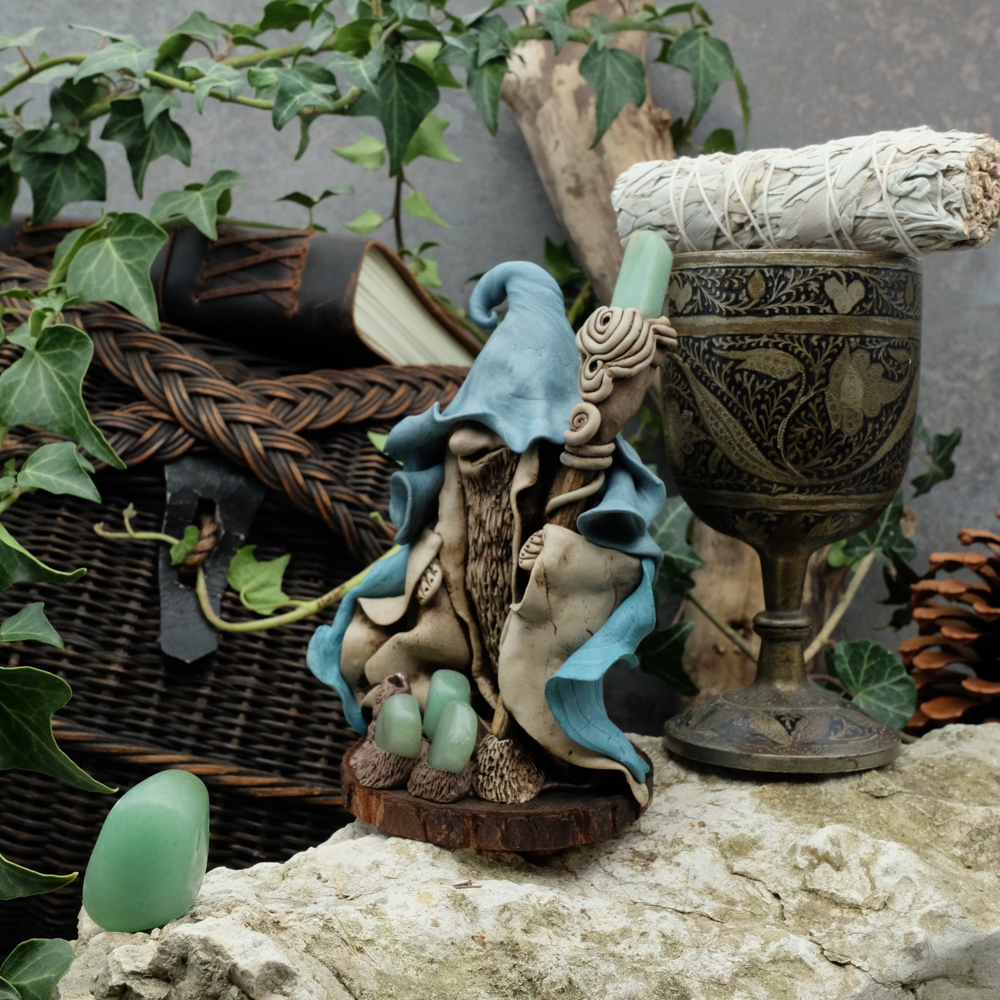 Ich modelliere diesen Druiden aus selbsthärtendem Ton. Jede Figur ist ein Unikat, das sich durch seinen Charakter, seine natürlichen Elemente und seine Einzigartigkeit auszeichnet.