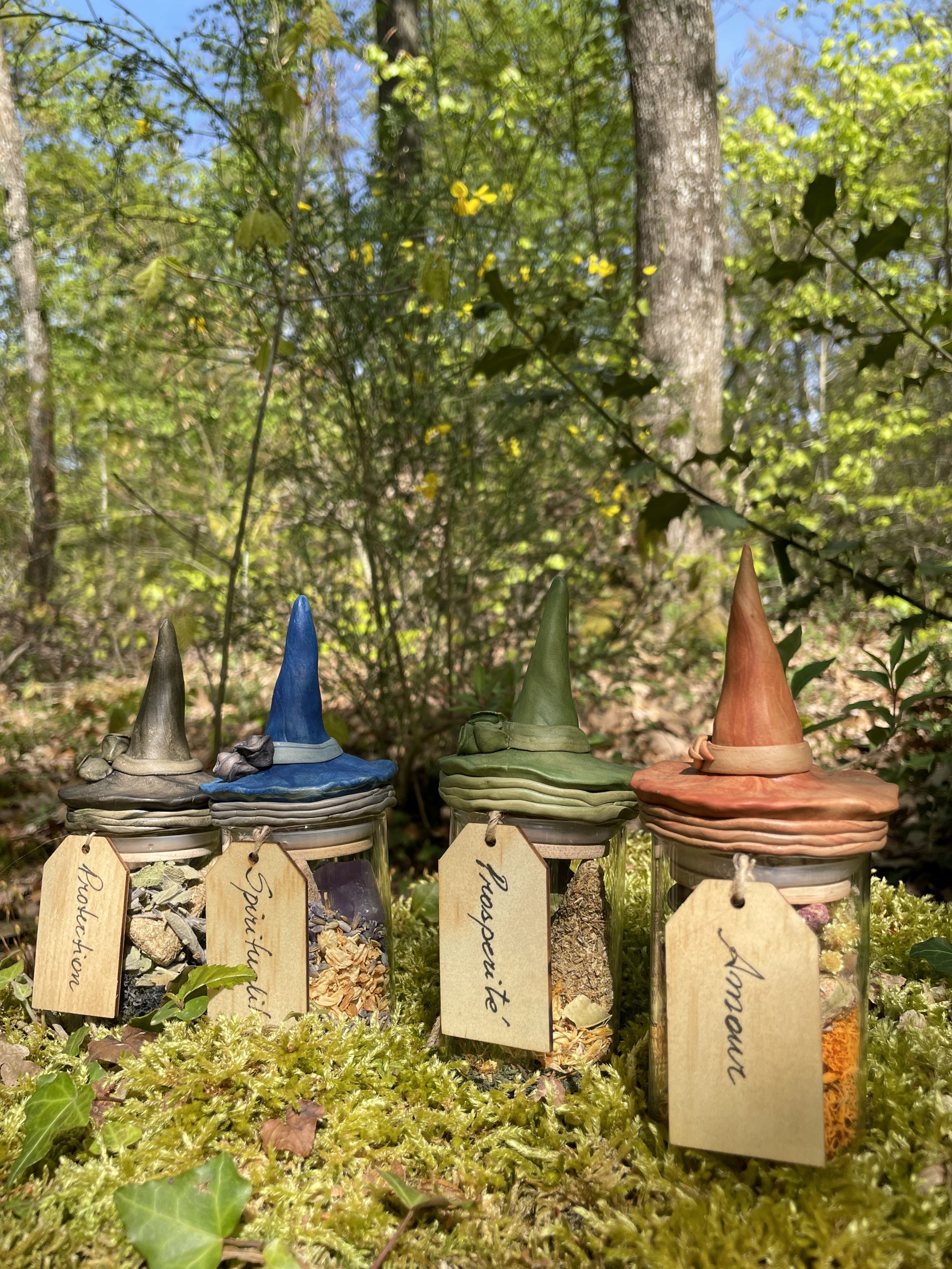 Chaque pot de sort contient des cristaux et des herbes afin de représenter l'intention du sort lui-même. Un encens alors ouvrez le et respirez profondément !