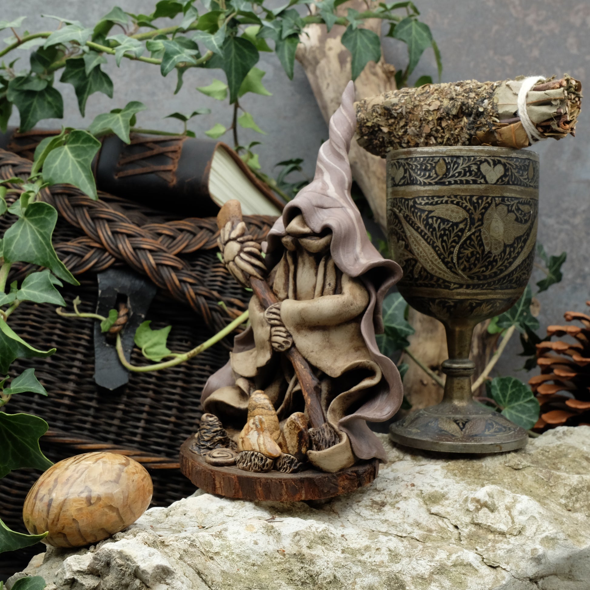 Ich modelliere diesen Druiden aus selbsthärtendem Ton. Jede Figur ist ein Unikat, das sich durch seinen Charakter, seine natürlichen Elemente und seine Einzigartigkeit auszeichnet.
