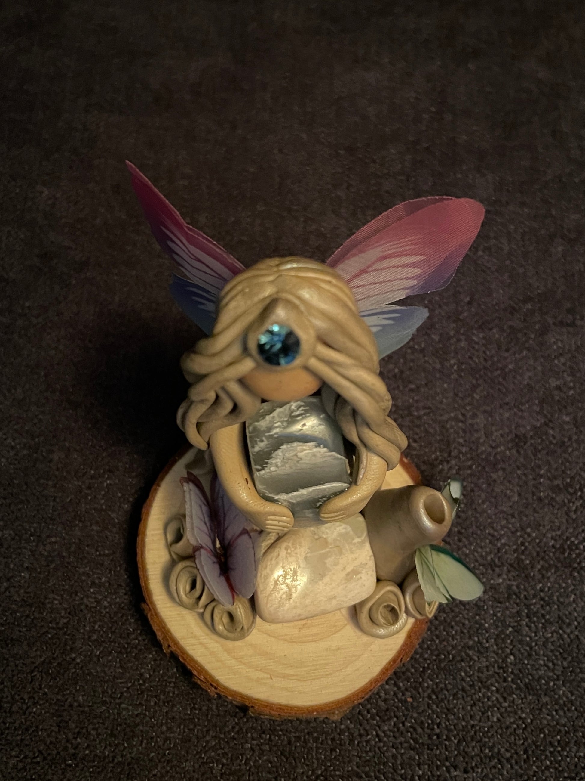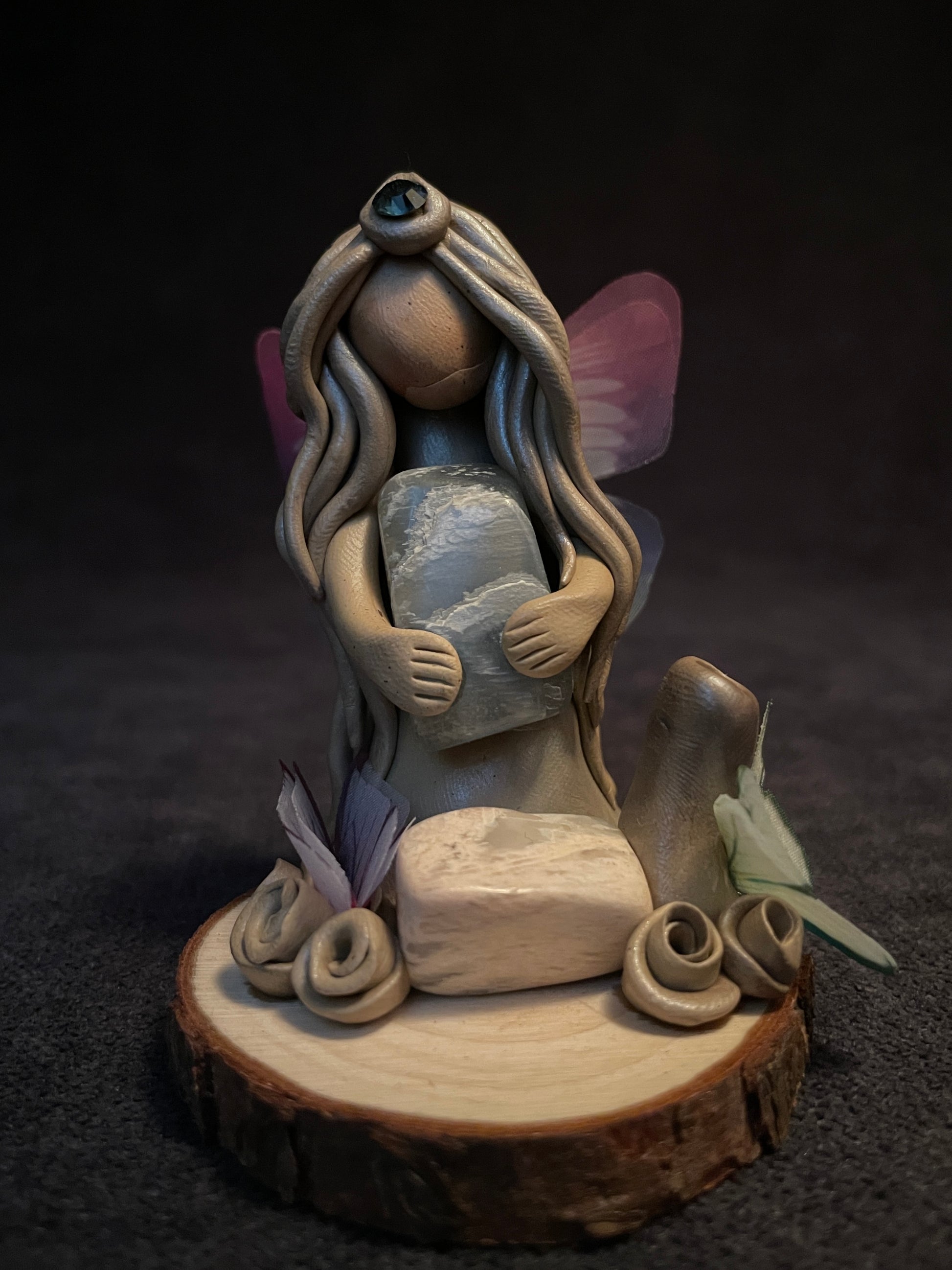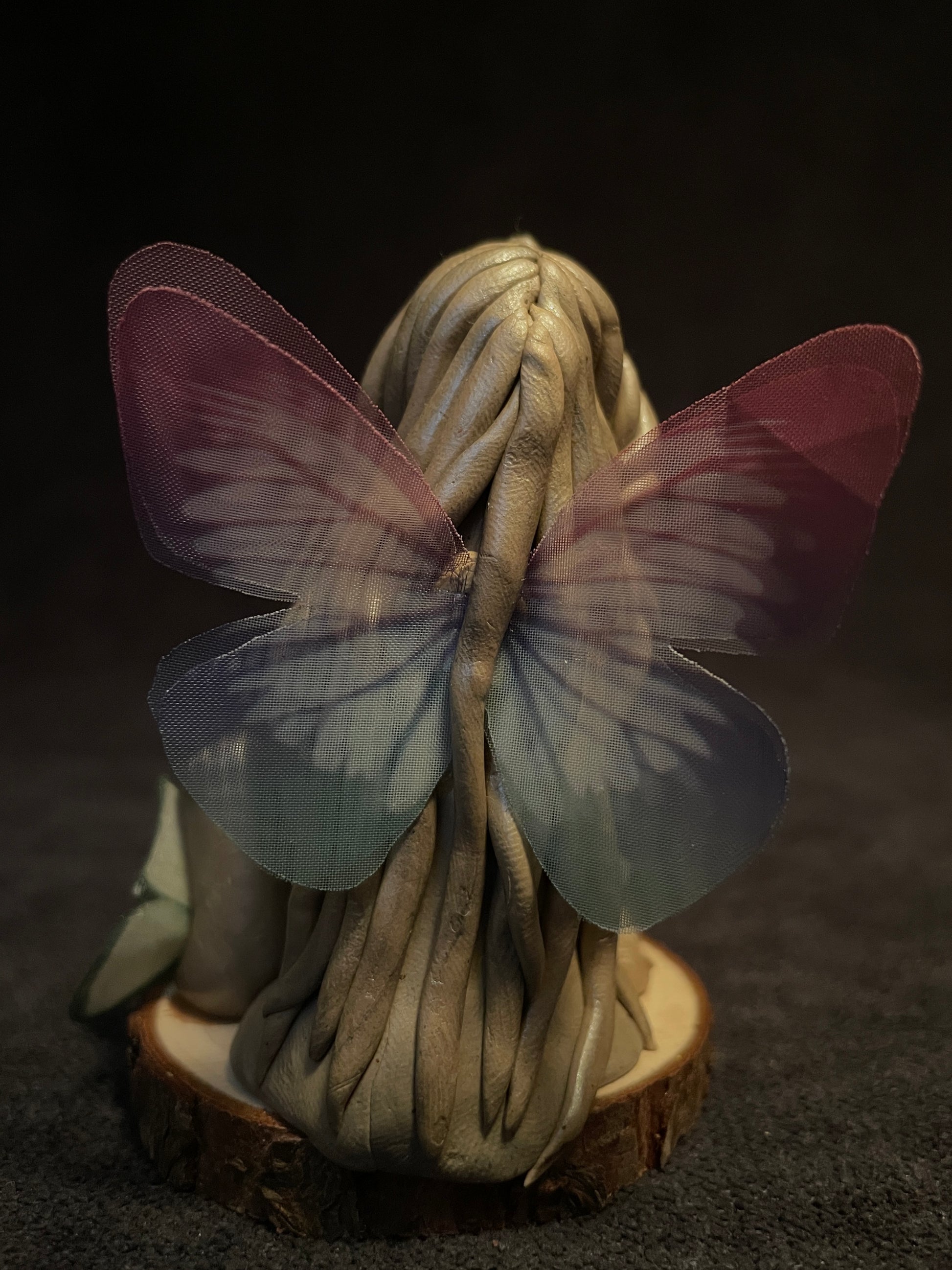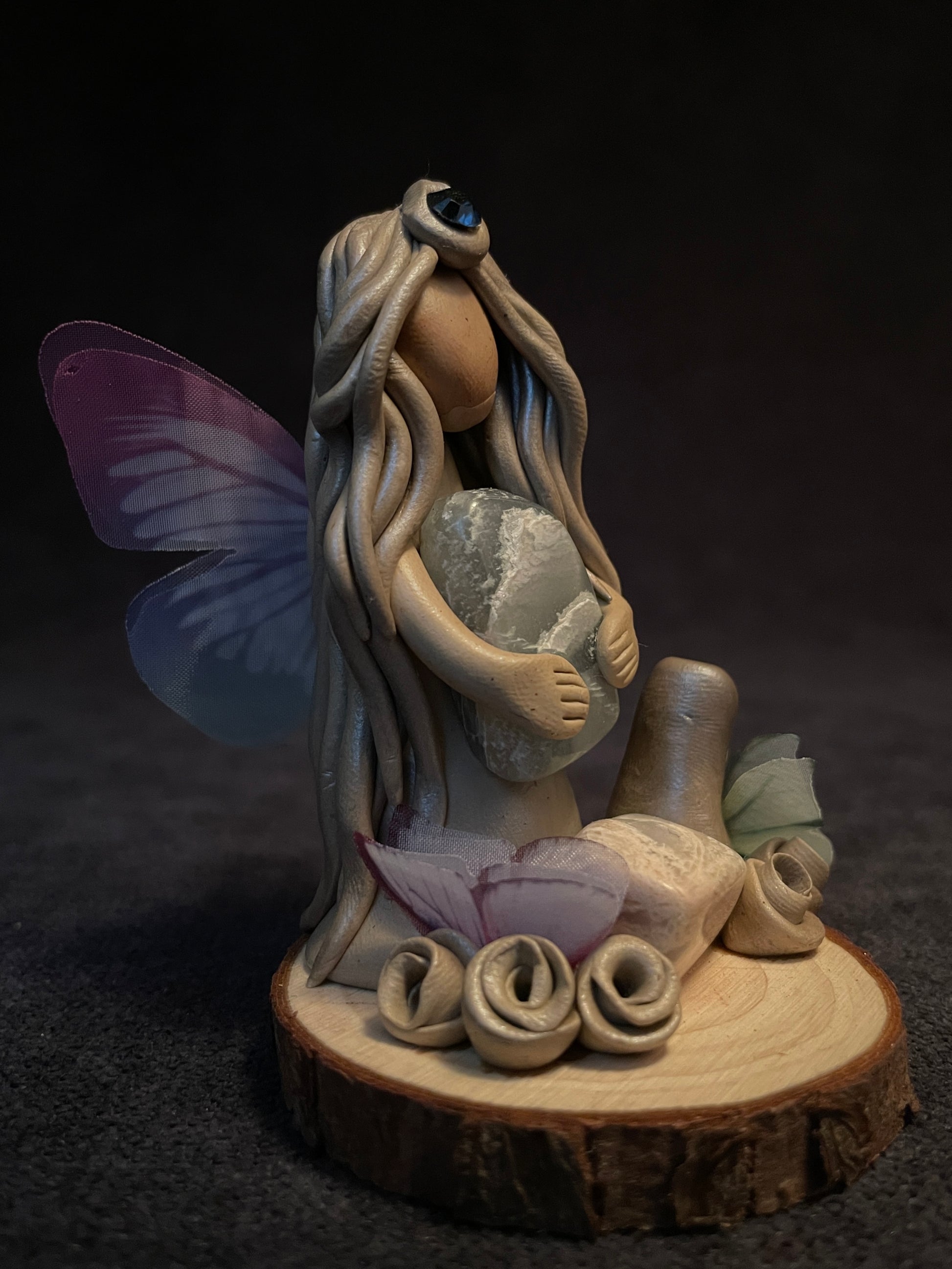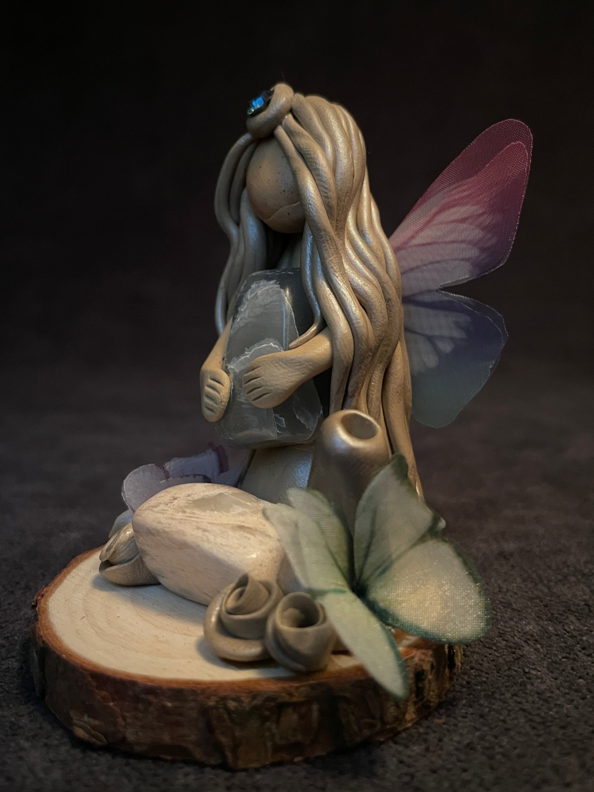 Je modèle ces fées en pâte autodurcissante. Chaque figurine est une pièce unique qui se distingue selon son caractère, ses éléments naturels et sa singularité.