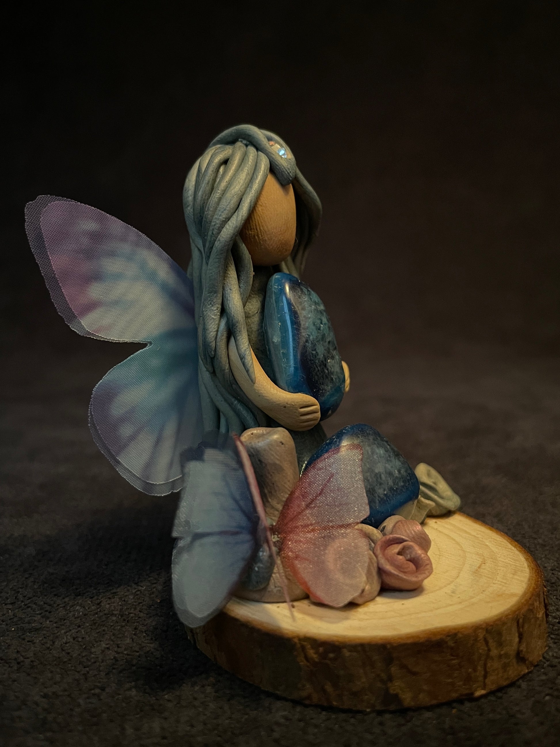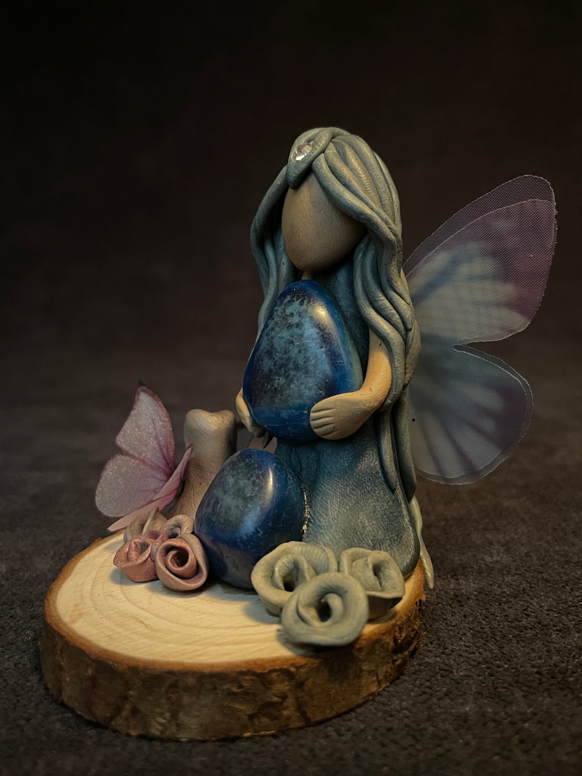 Je modèle ces fées en pâte autodurcissante. Chaque figurine est une pièce unique qui se distingue selon son caractère, ses éléments naturels et sa singularité.