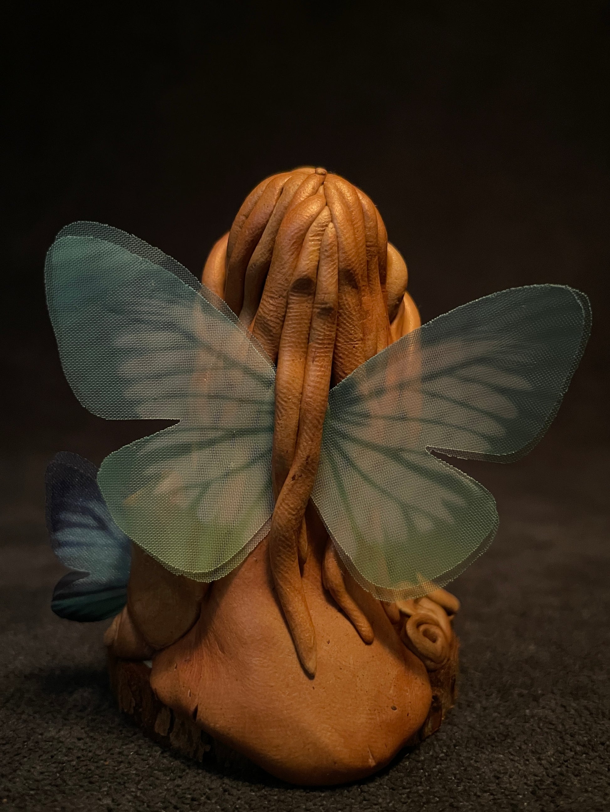 Je modèle ces fées en pâte autodurcissante. Chaque figurine est une pièce unique qui se distingue selon son caractère, ses éléments naturels et sa singularité.