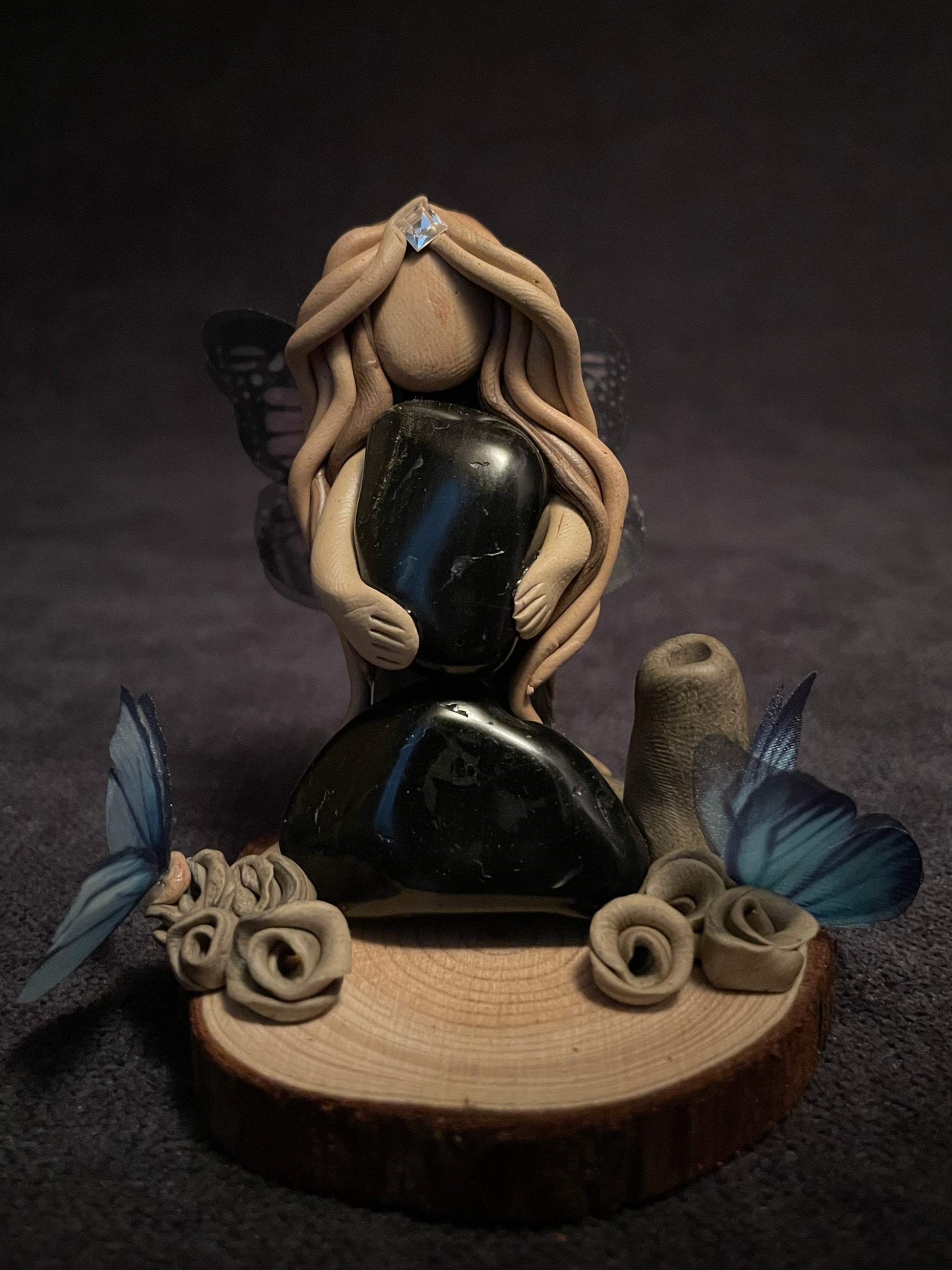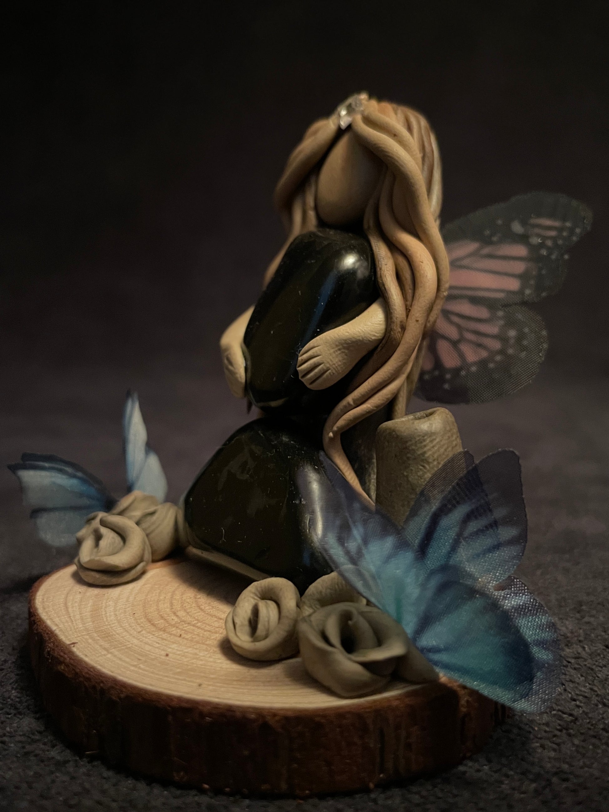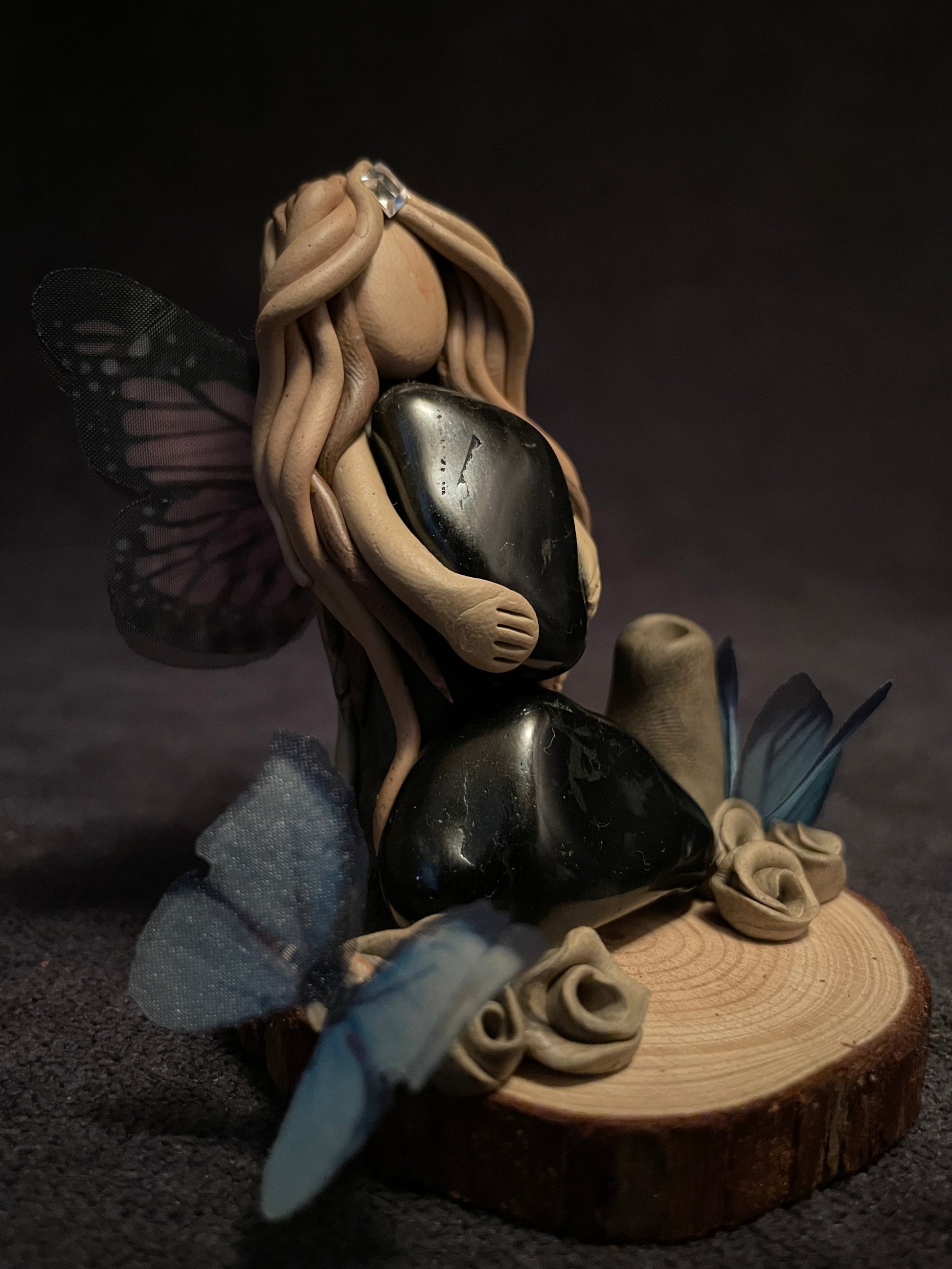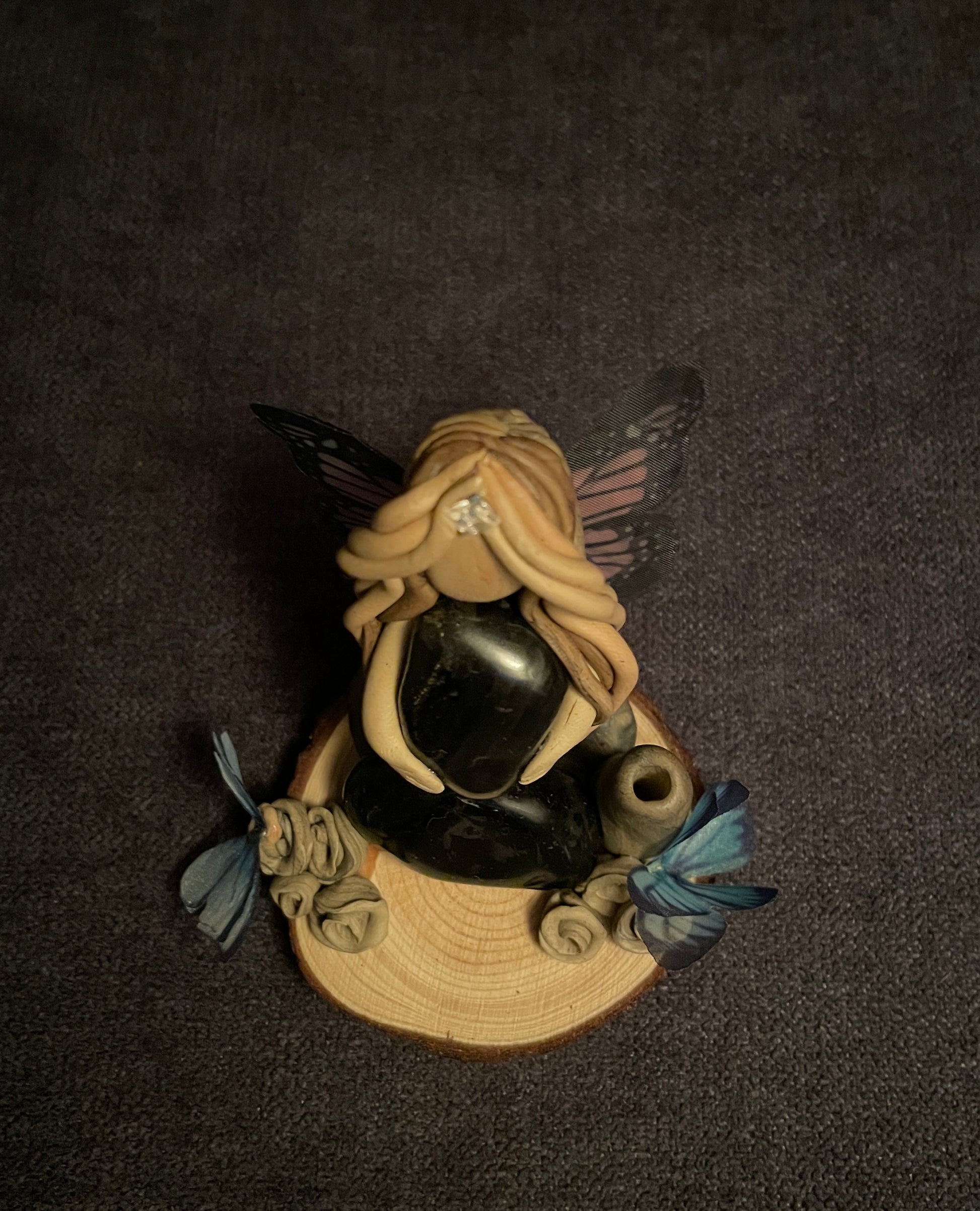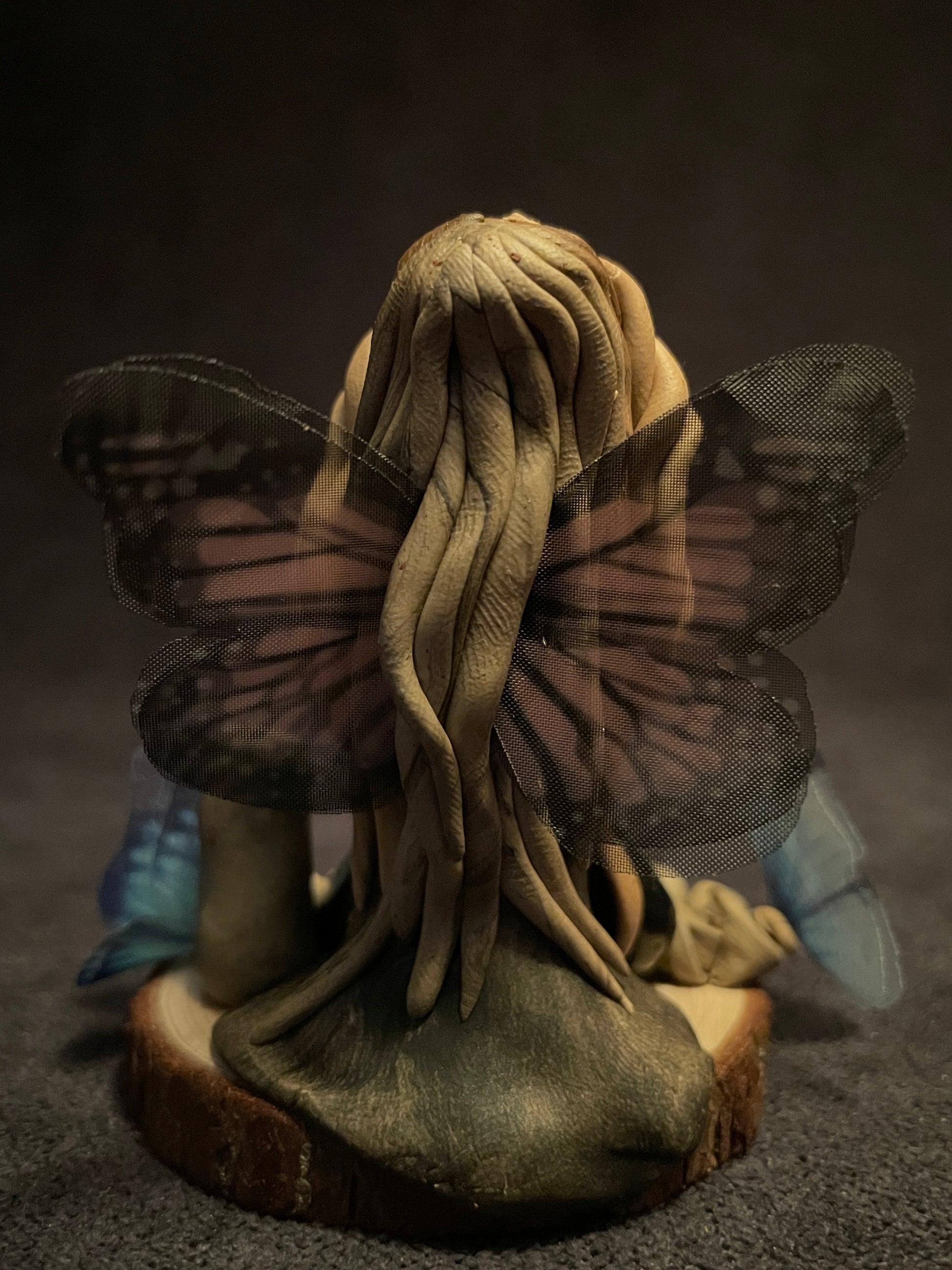 Je modèle ces fées en pâte autodurcissante. Chaque figurine est une pièce unique qui se distingue selon son caractère, ses éléments naturels et sa singularité.
