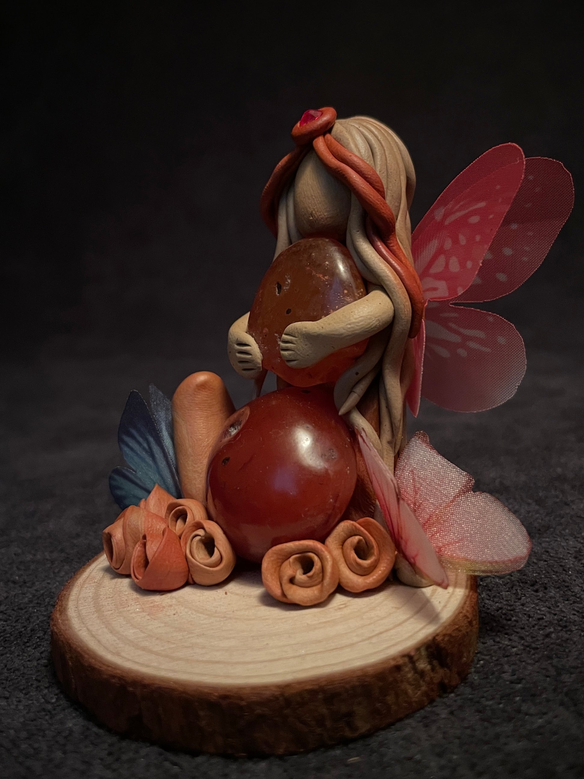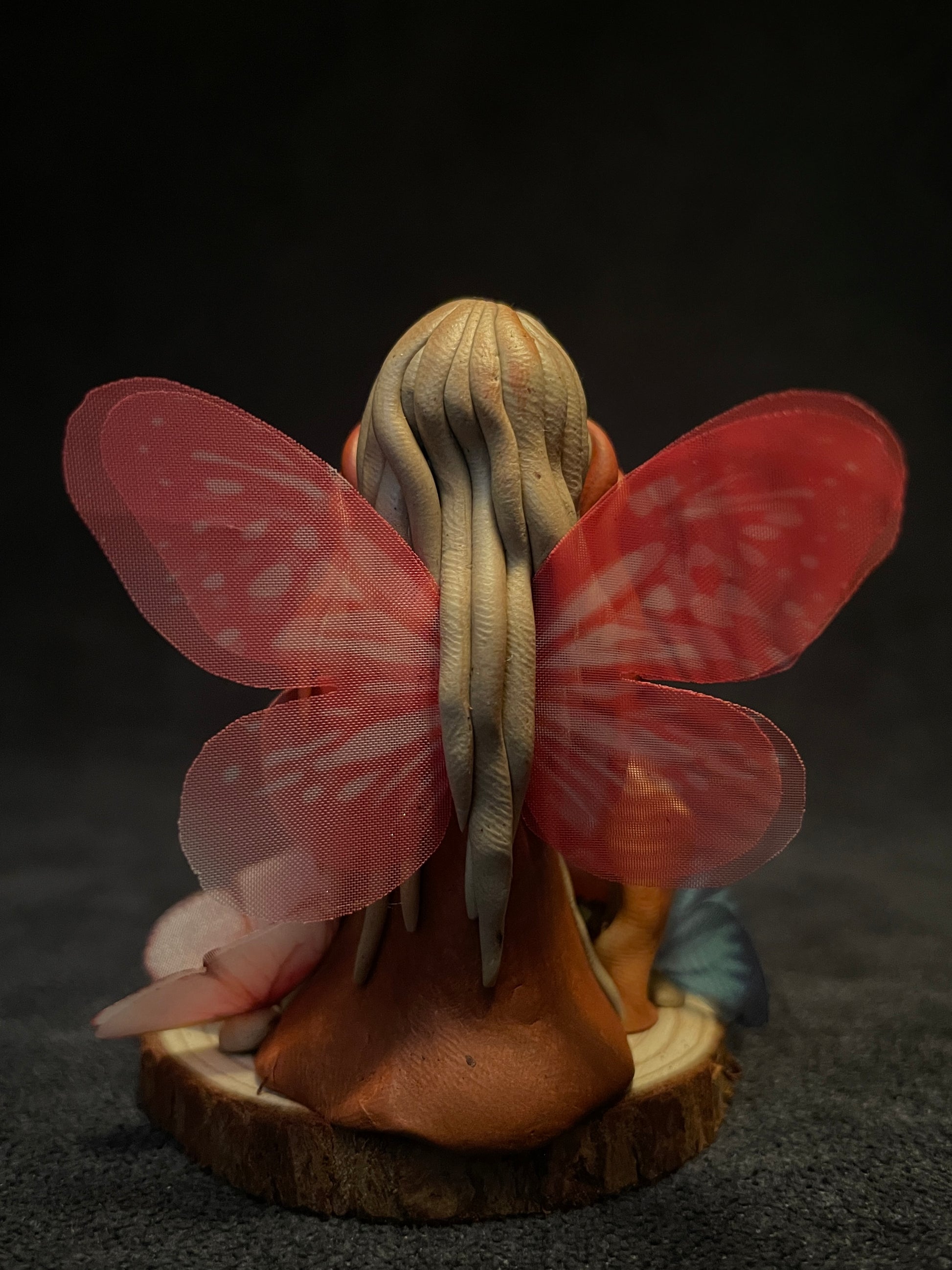 Je modèle ces fées en pâte autodurcissante. Chaque figurine est une pièce unique qui se distingue selon son caractère, ses éléments naturels et sa singularité.