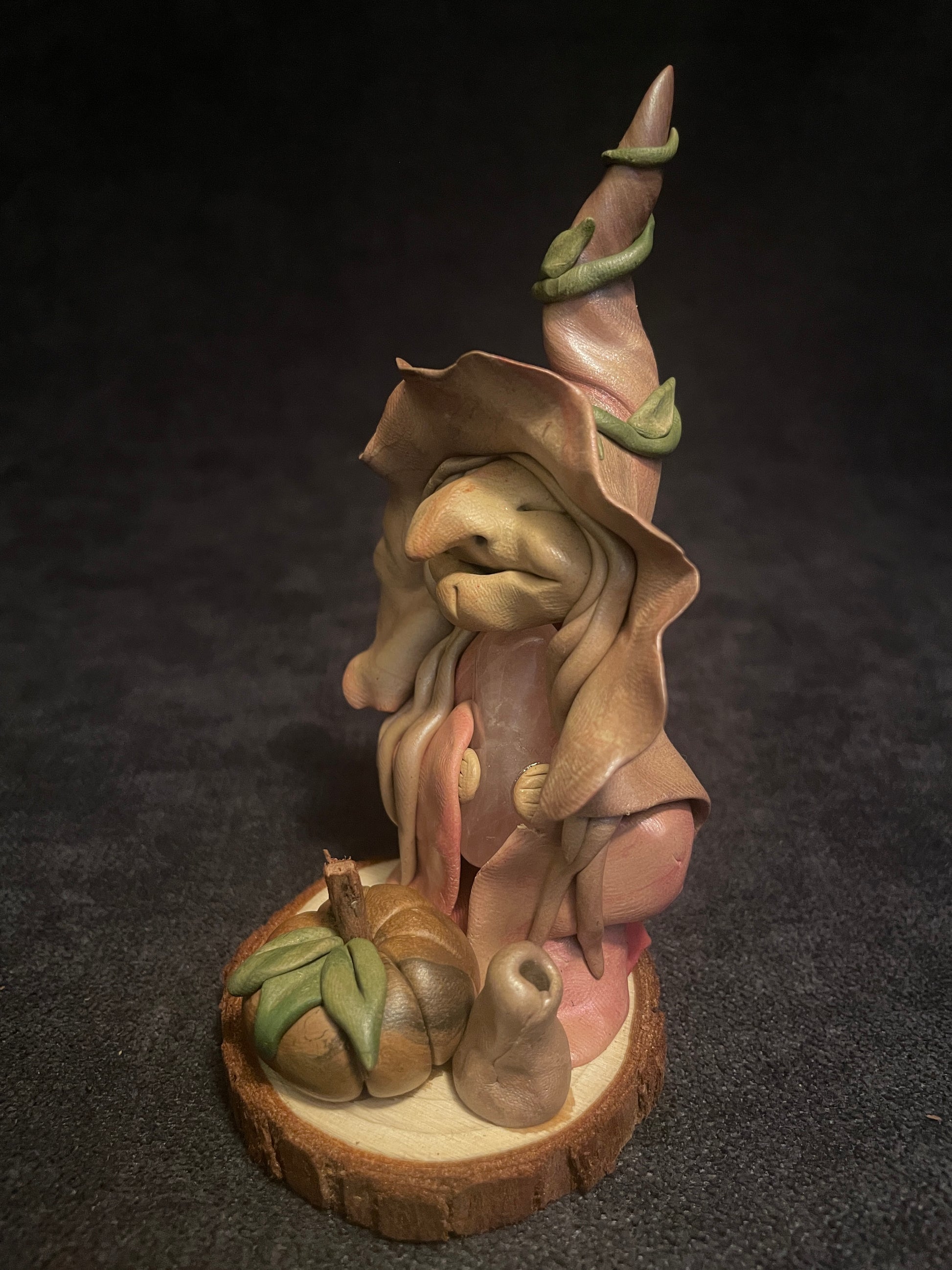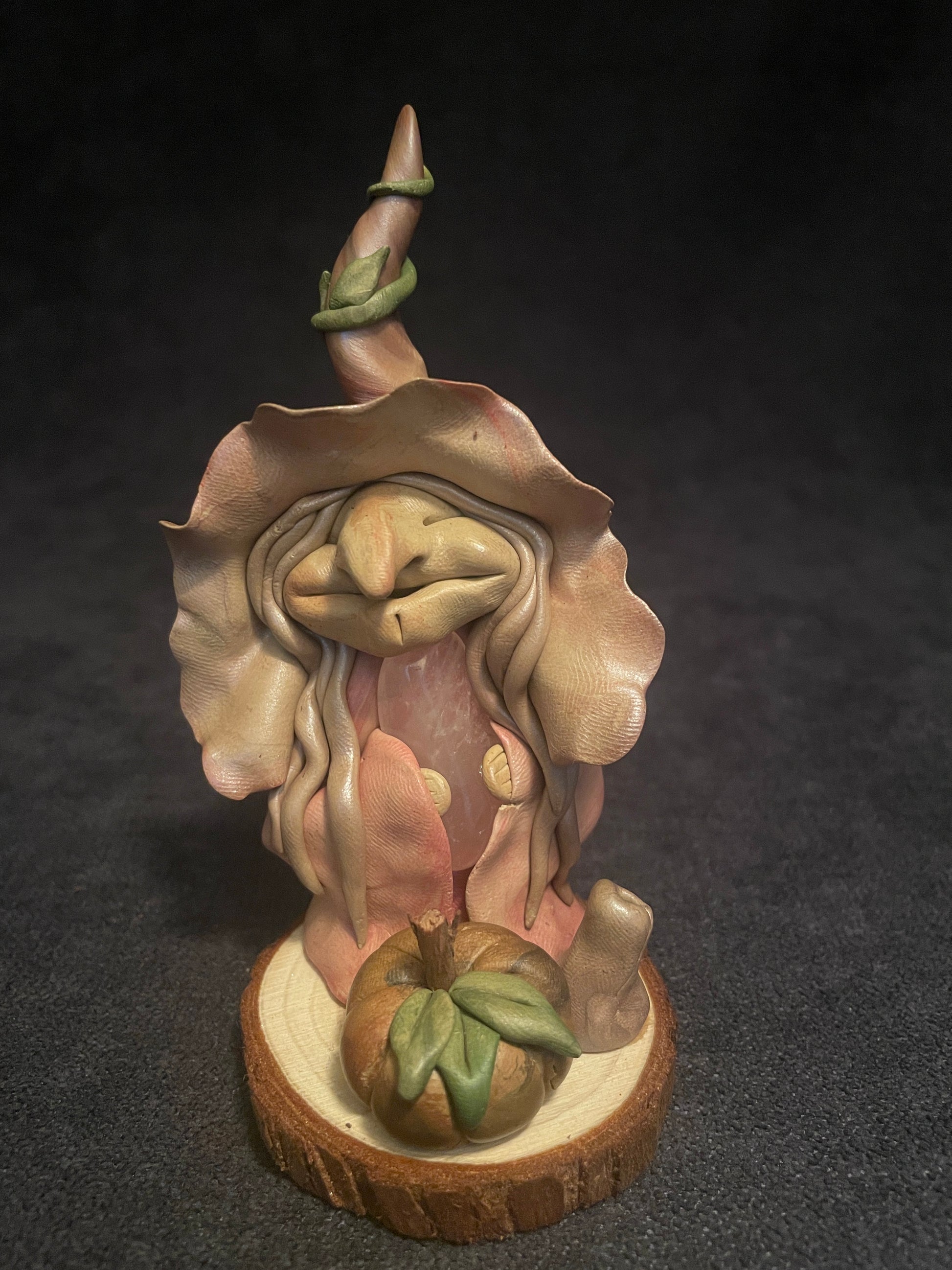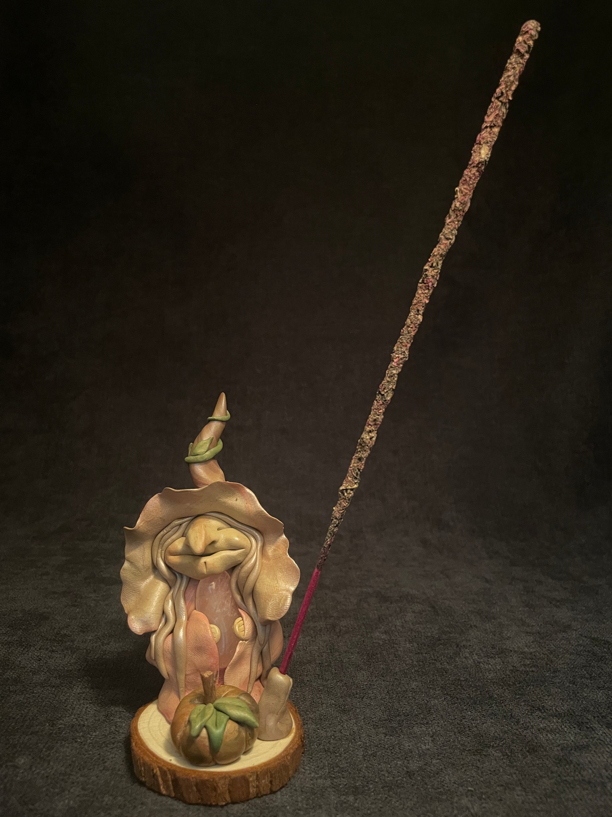 Je modèle ces sorcières en pâte autodurcissante. Chaque figurine est une pièce unique qui se distingue par son caractère, ses éléments naturels et sa singularité.