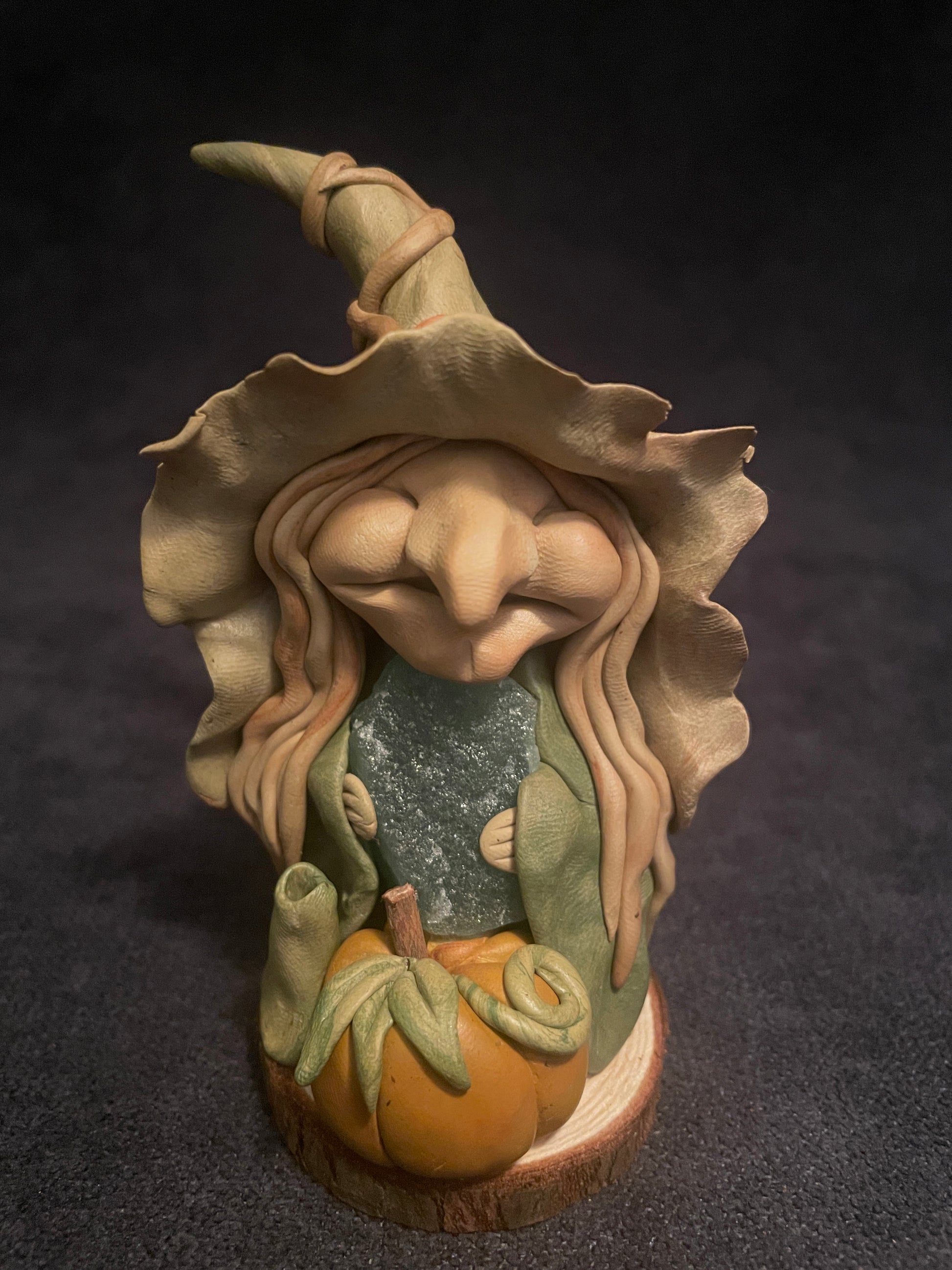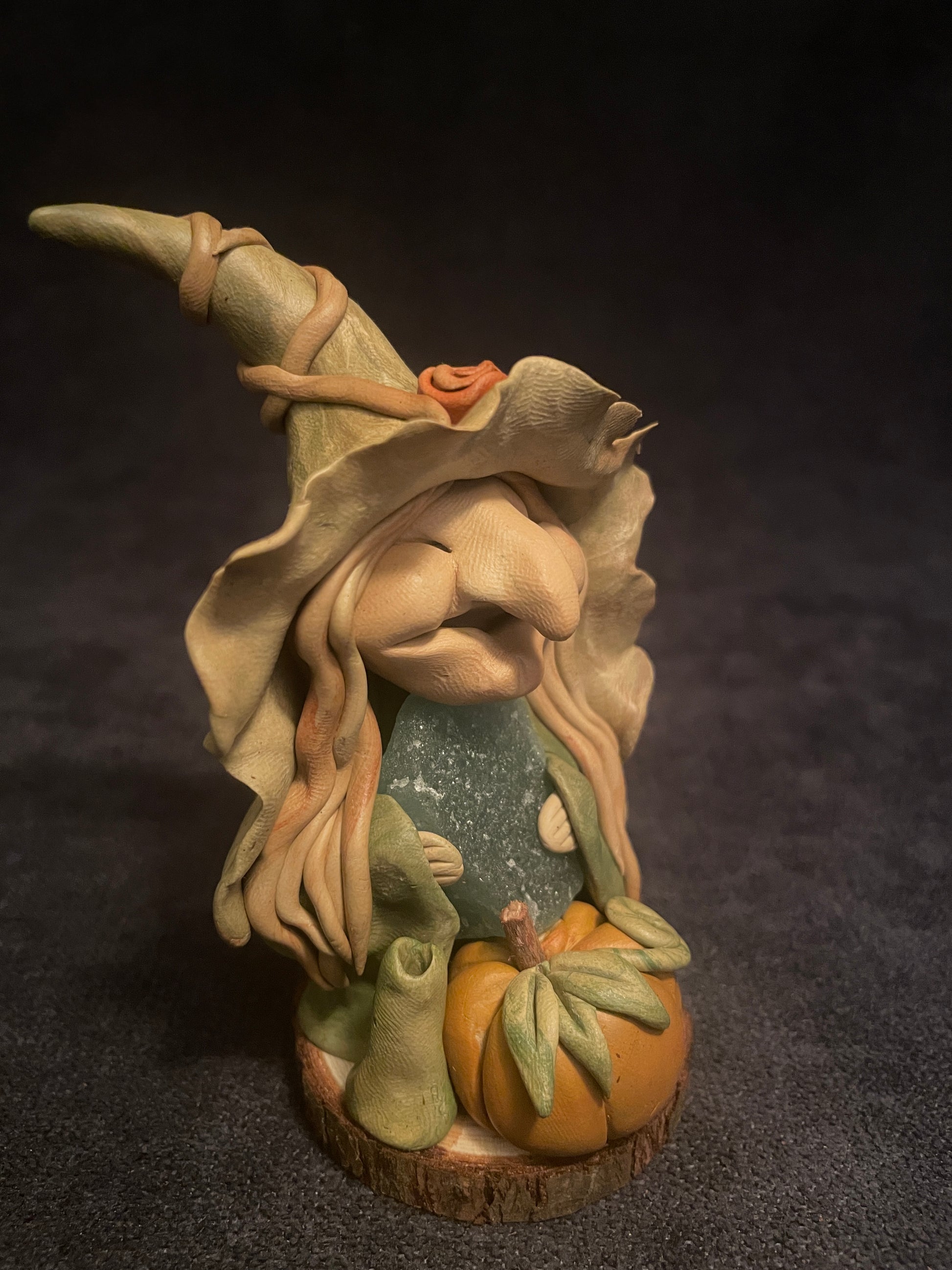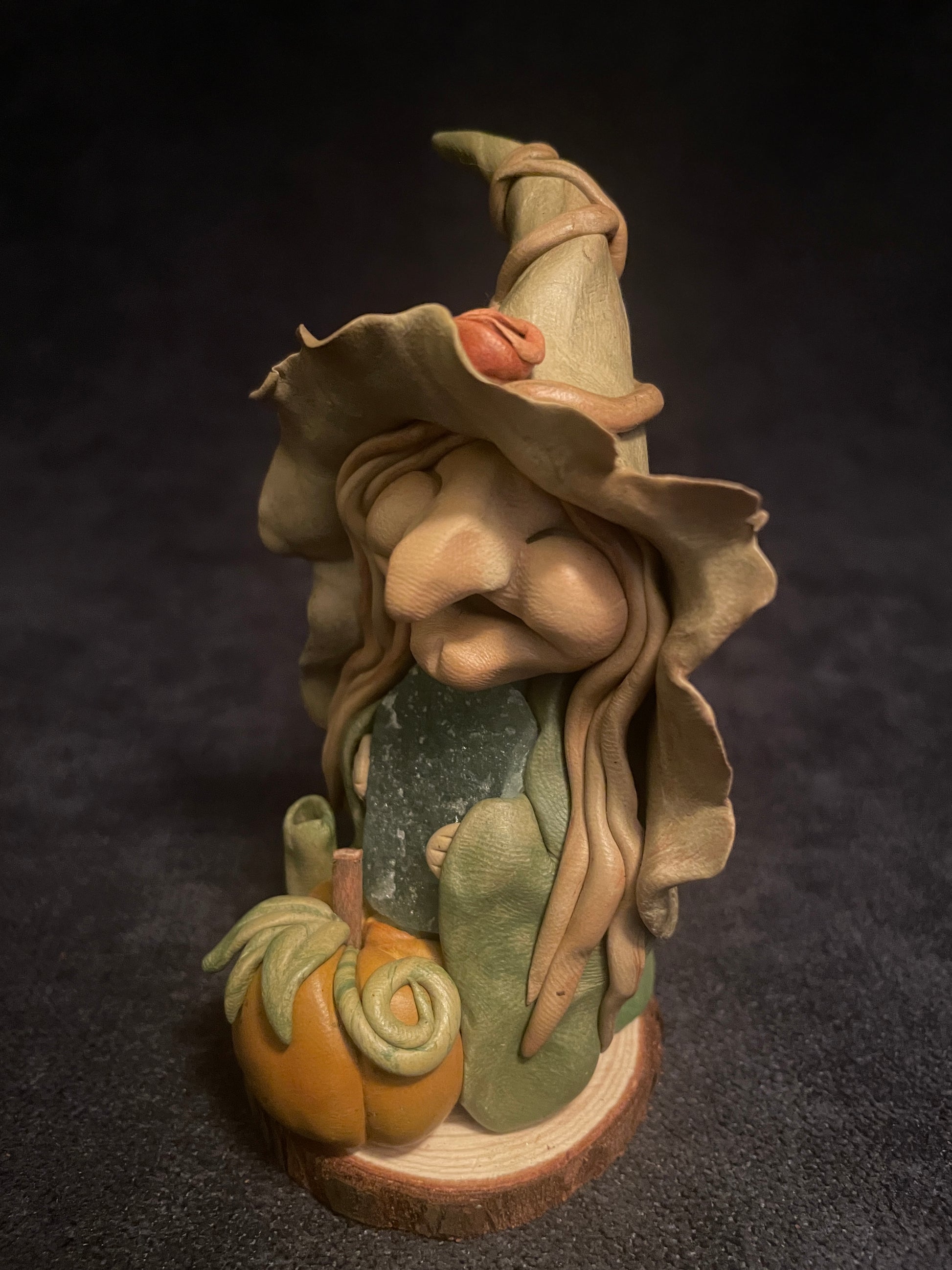 Je modèle ces sorcières en pâte autodurcissante. Chaque figurine est une pièce unique qui se distingue par son caractère, ses éléments naturels et sa