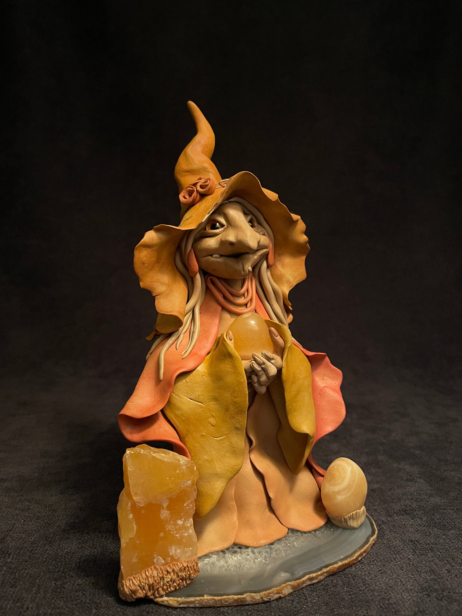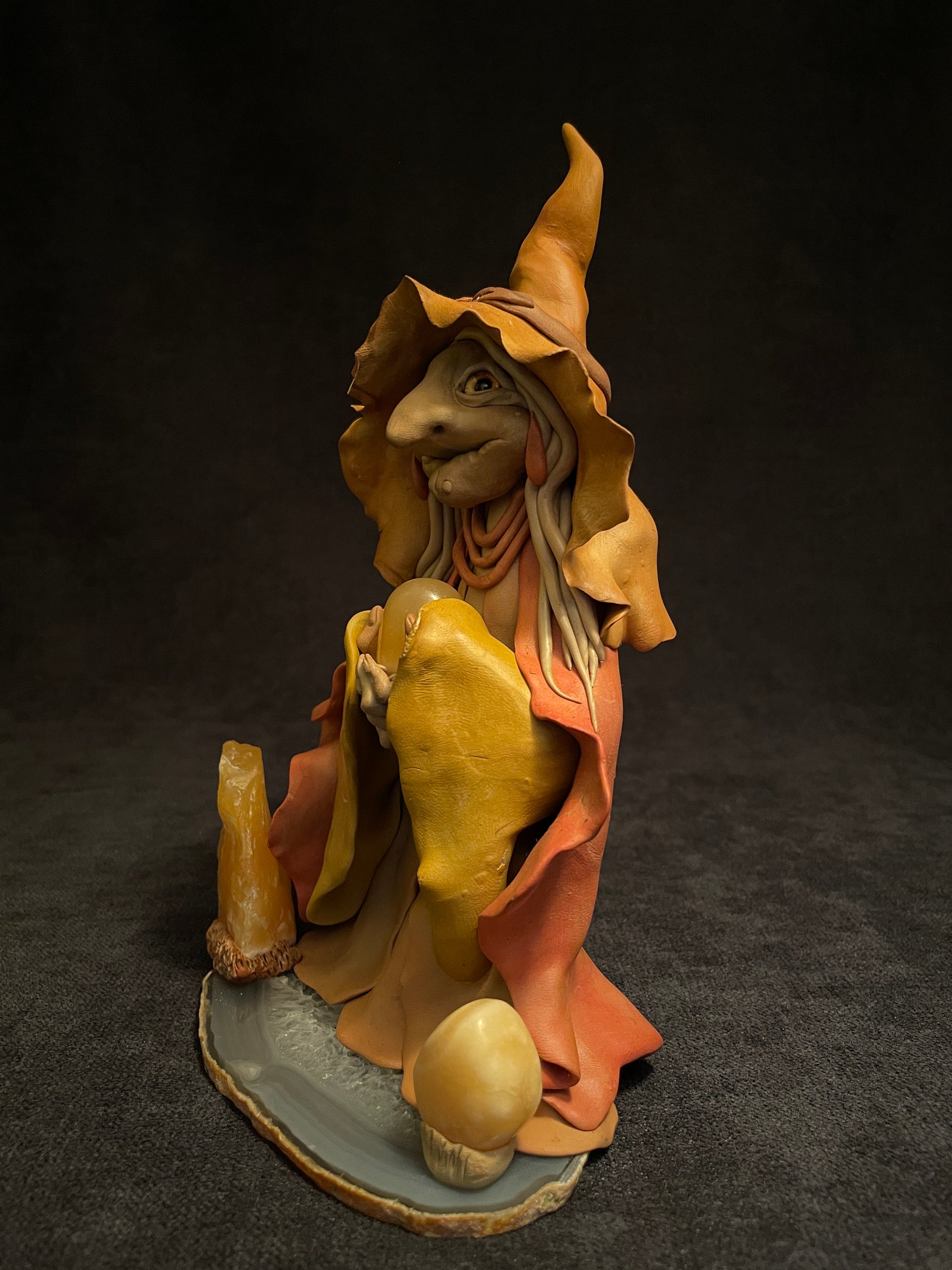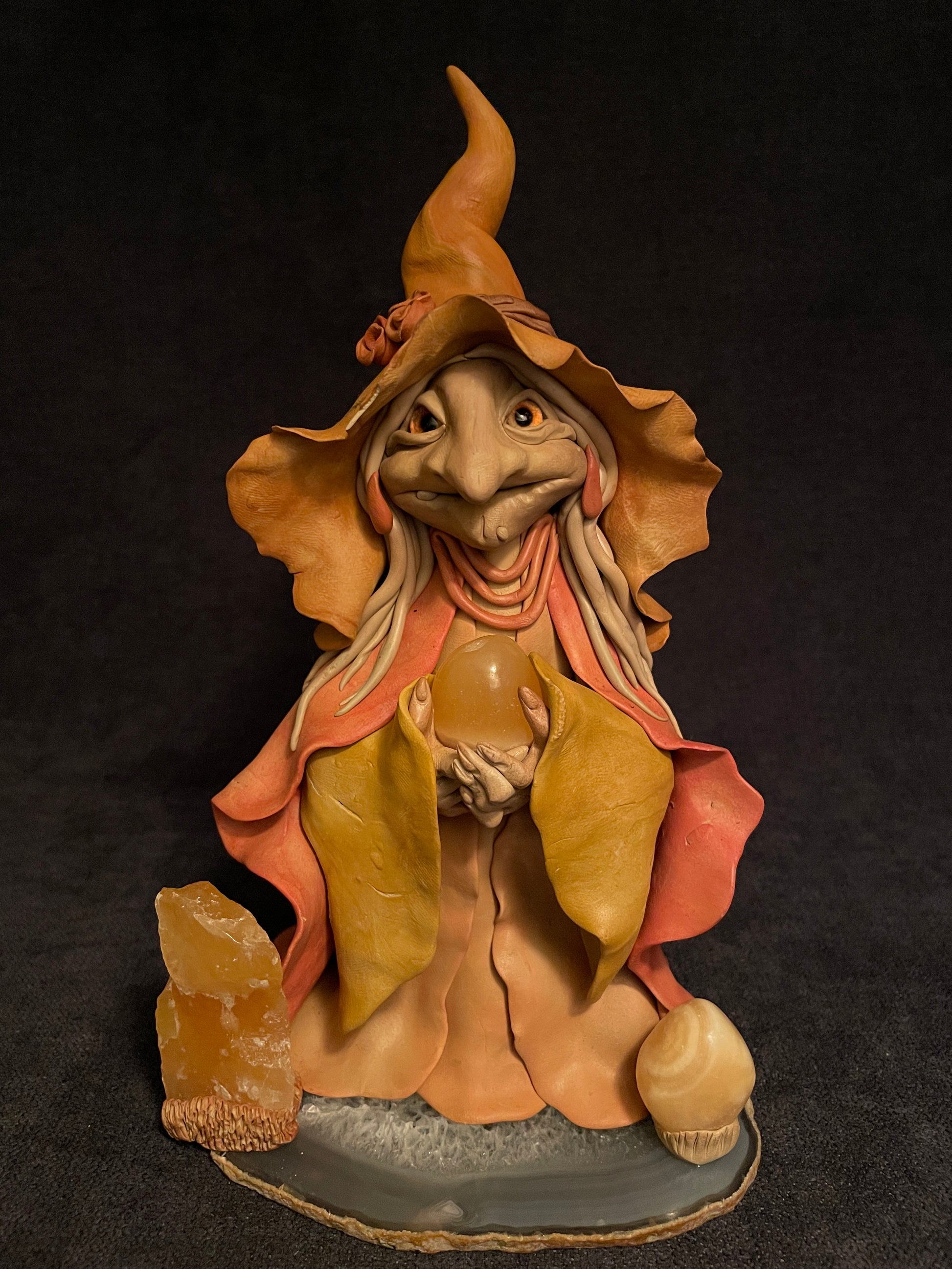 Diese Hexe habe ich aus selbsthärtendem Ton modelliert. Jede Figur ist ein Unikat, das sich durch seinen Charakter, seine natürlichen Elemente und seine Einzigartigkeit auszeichnet.