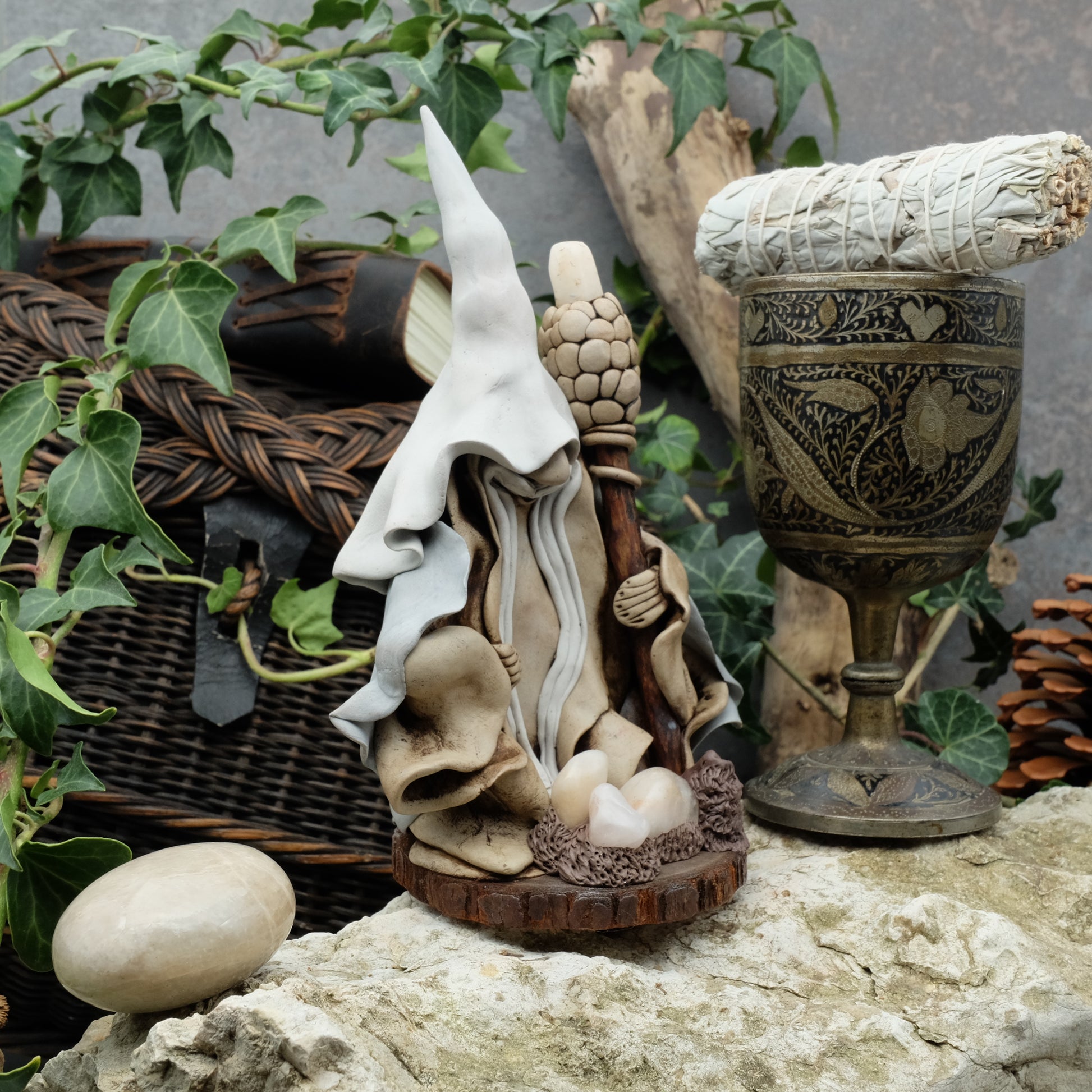 Ich modelliere diesen Druiden aus selbsthärtendem Ton. Jede Figur ist ein Unikat, das sich durch seinen Charakter, seine natürlichen Elemente und seine Einzigartigkeit auszeichnet.