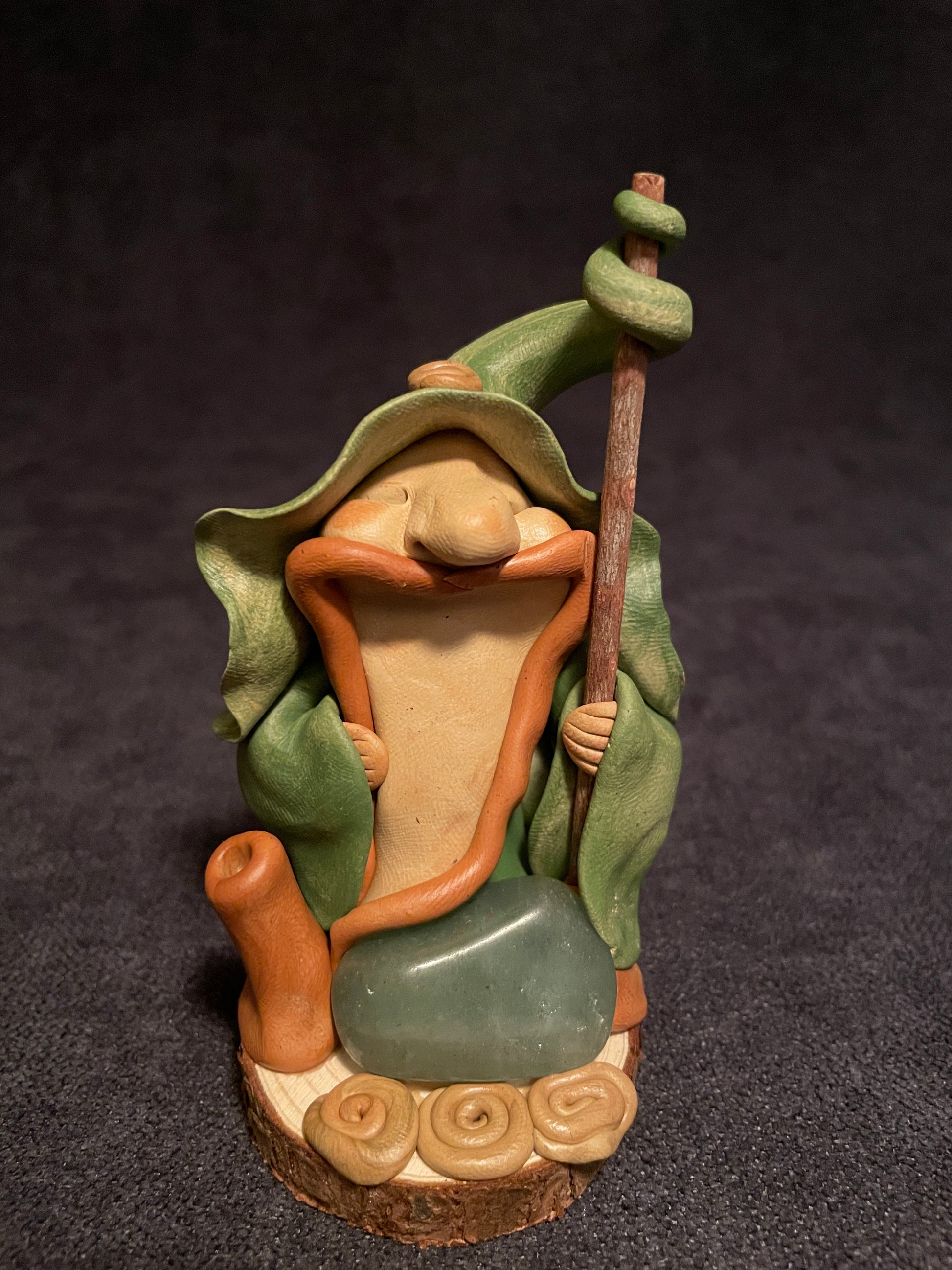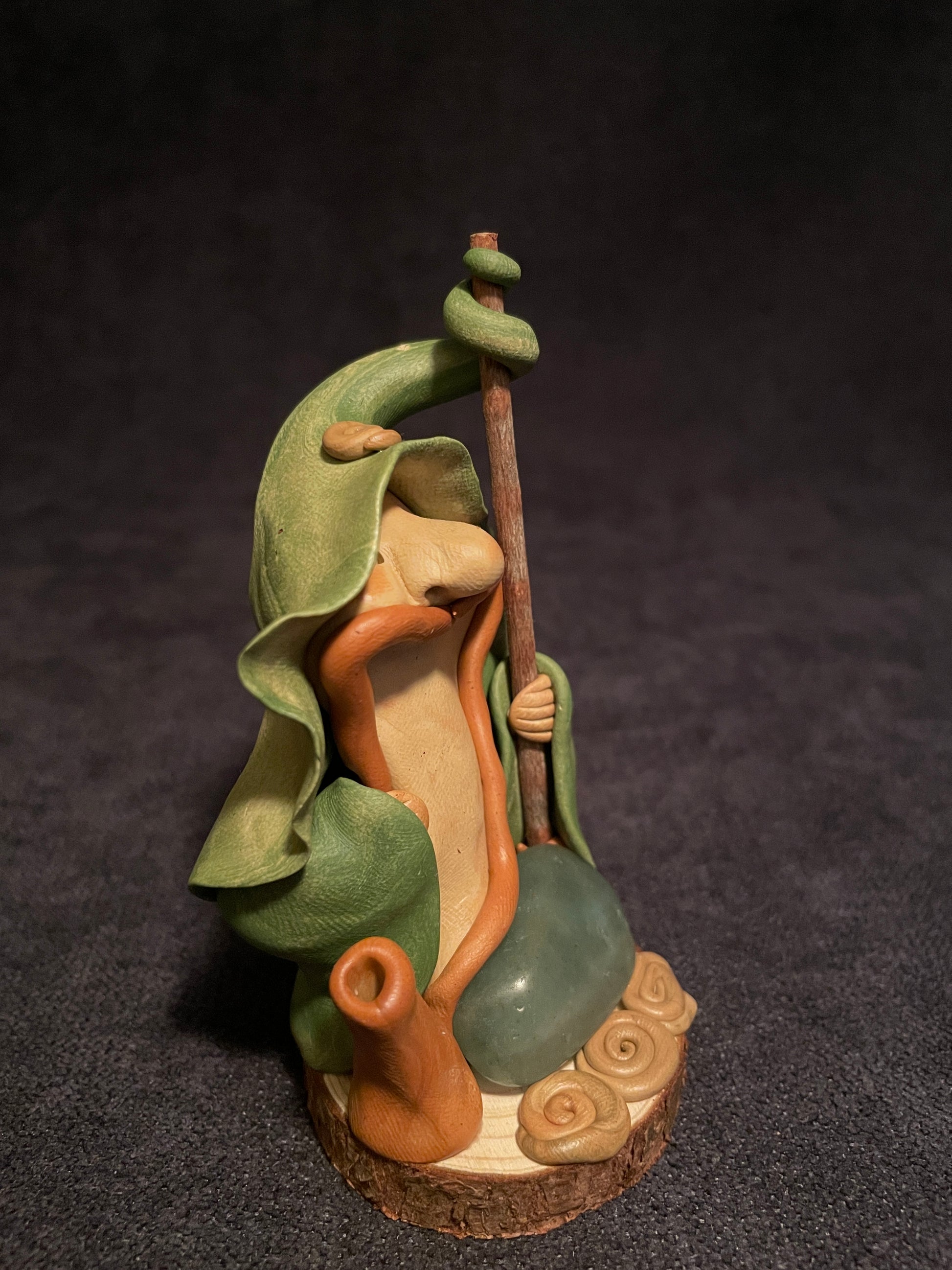 Je modèle ces druides en pâte autodurcissante. Chaque figurine est une pièce unique qui se distingue selon son caractère, ses éléments naturels et sa singularité.