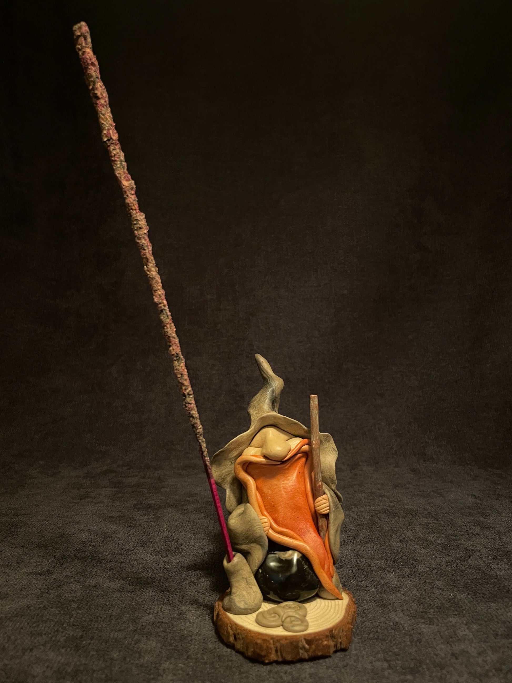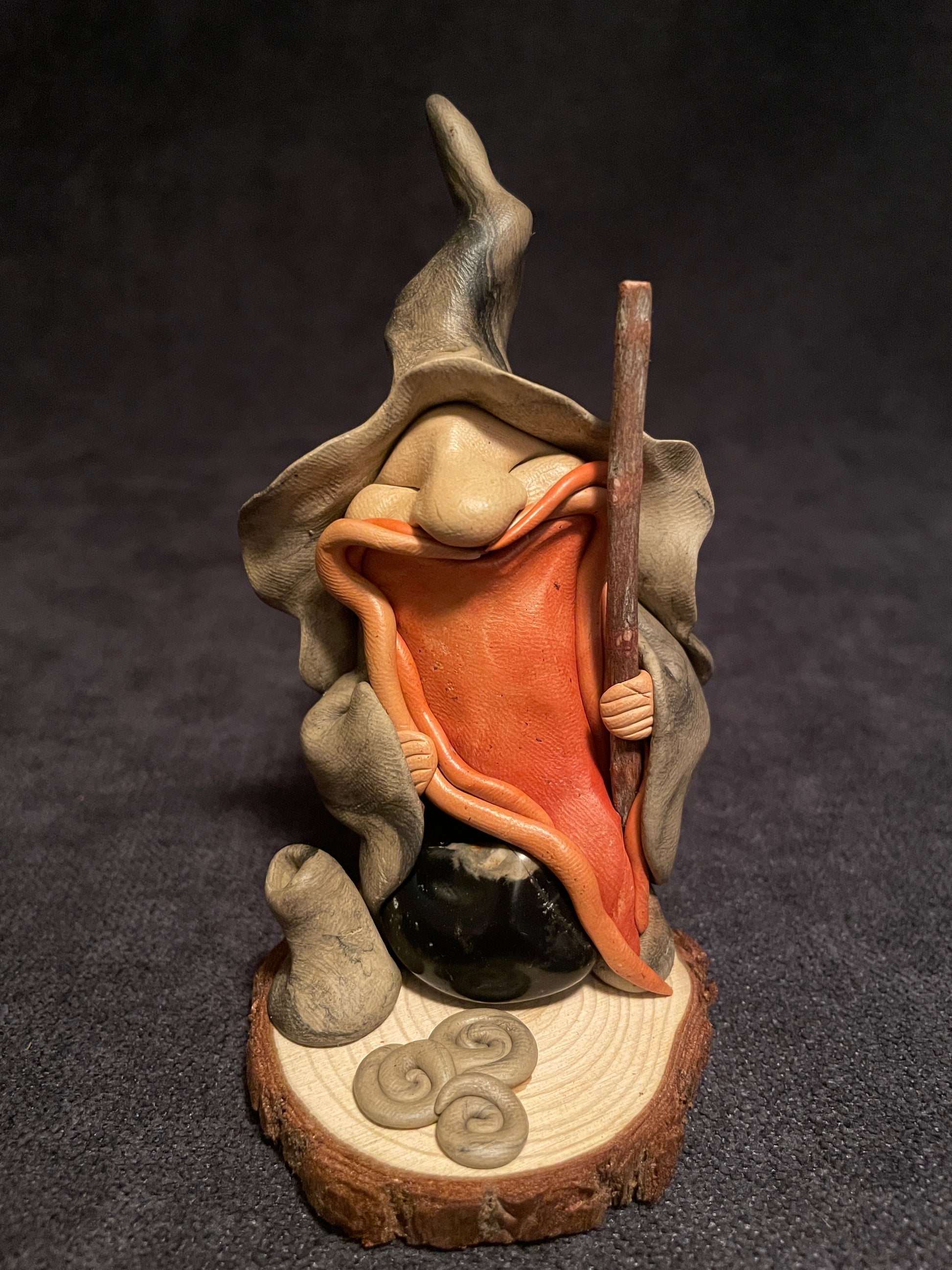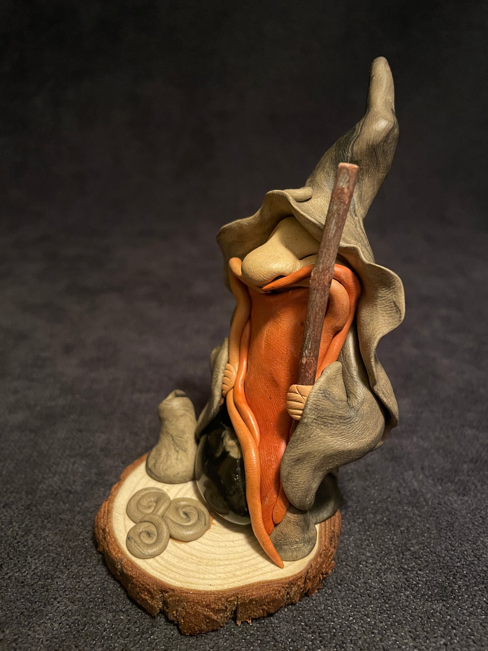 Je modèle ces druides en pâte autodurcissante. Chaque figurine est une pièce unique qui se distingue par son caractère, ses éléments naturels et sa singularité.