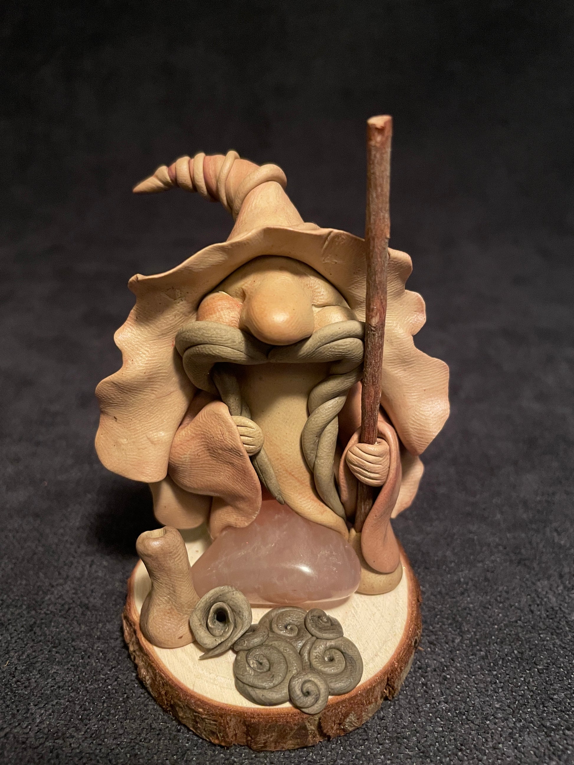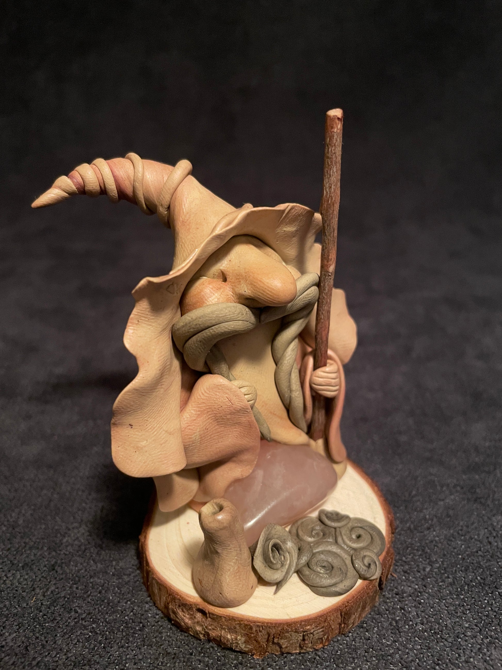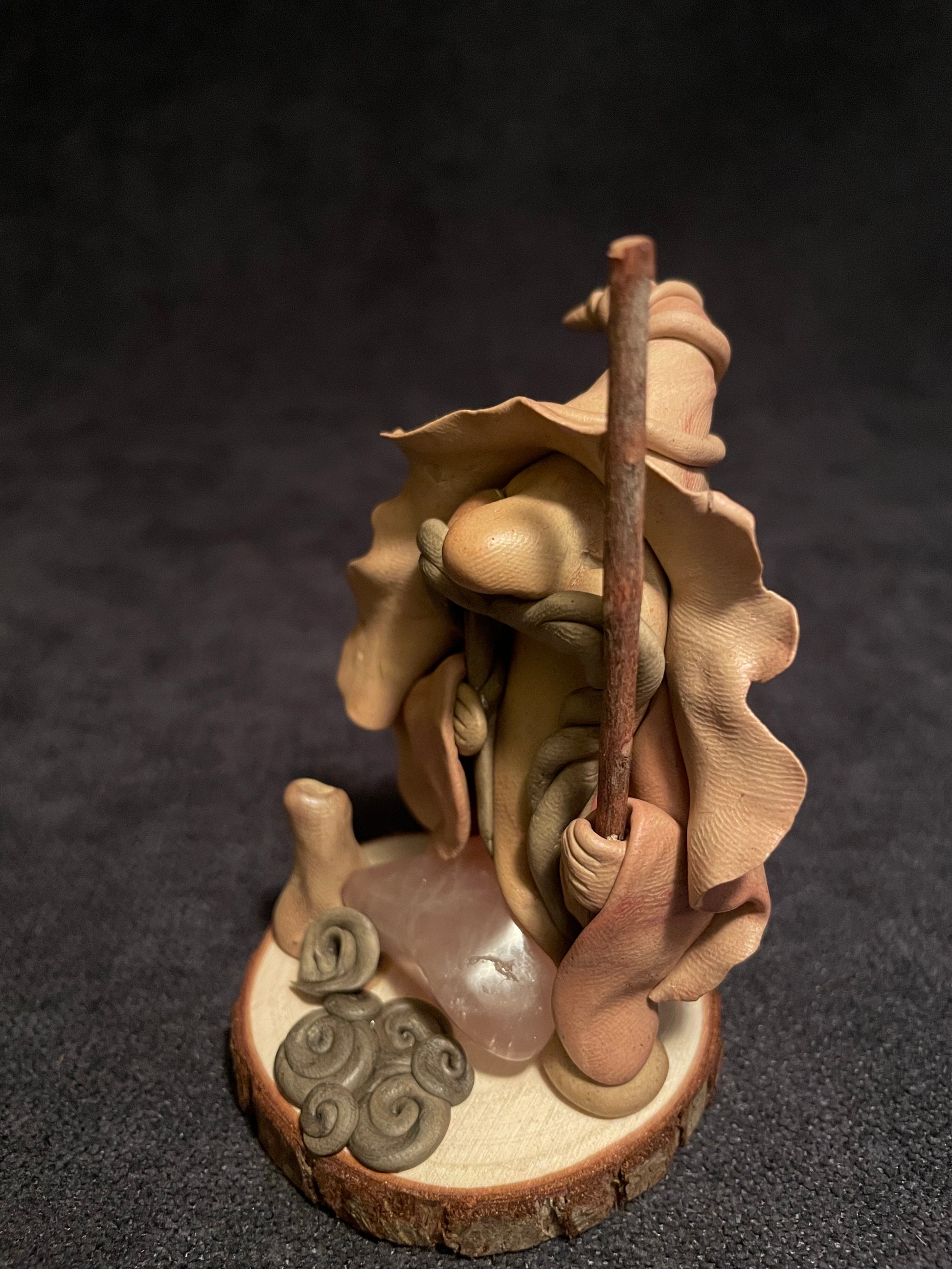 Je modèle ces druides en pâte autodurcissante. Chaque figurine est une pièce unique qui se distingue par son caractère, ses éléments naturels et sa singularité.