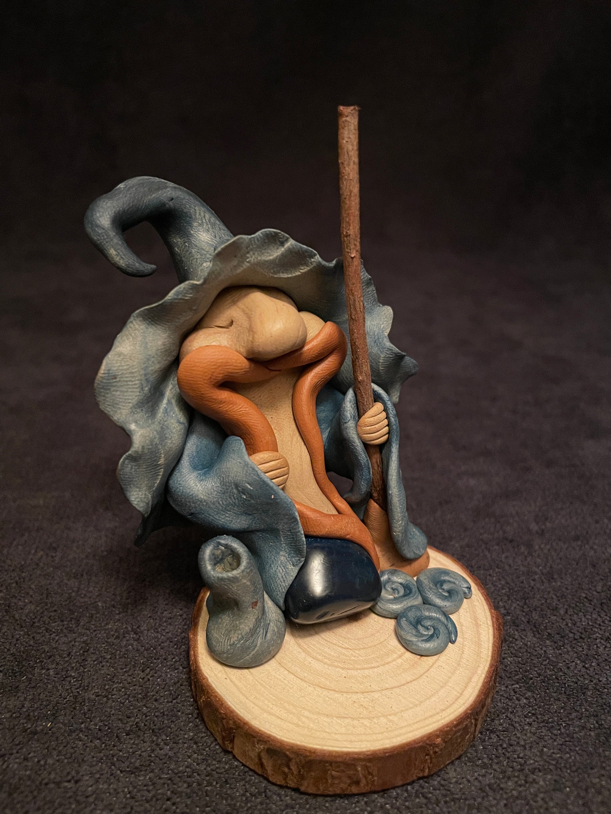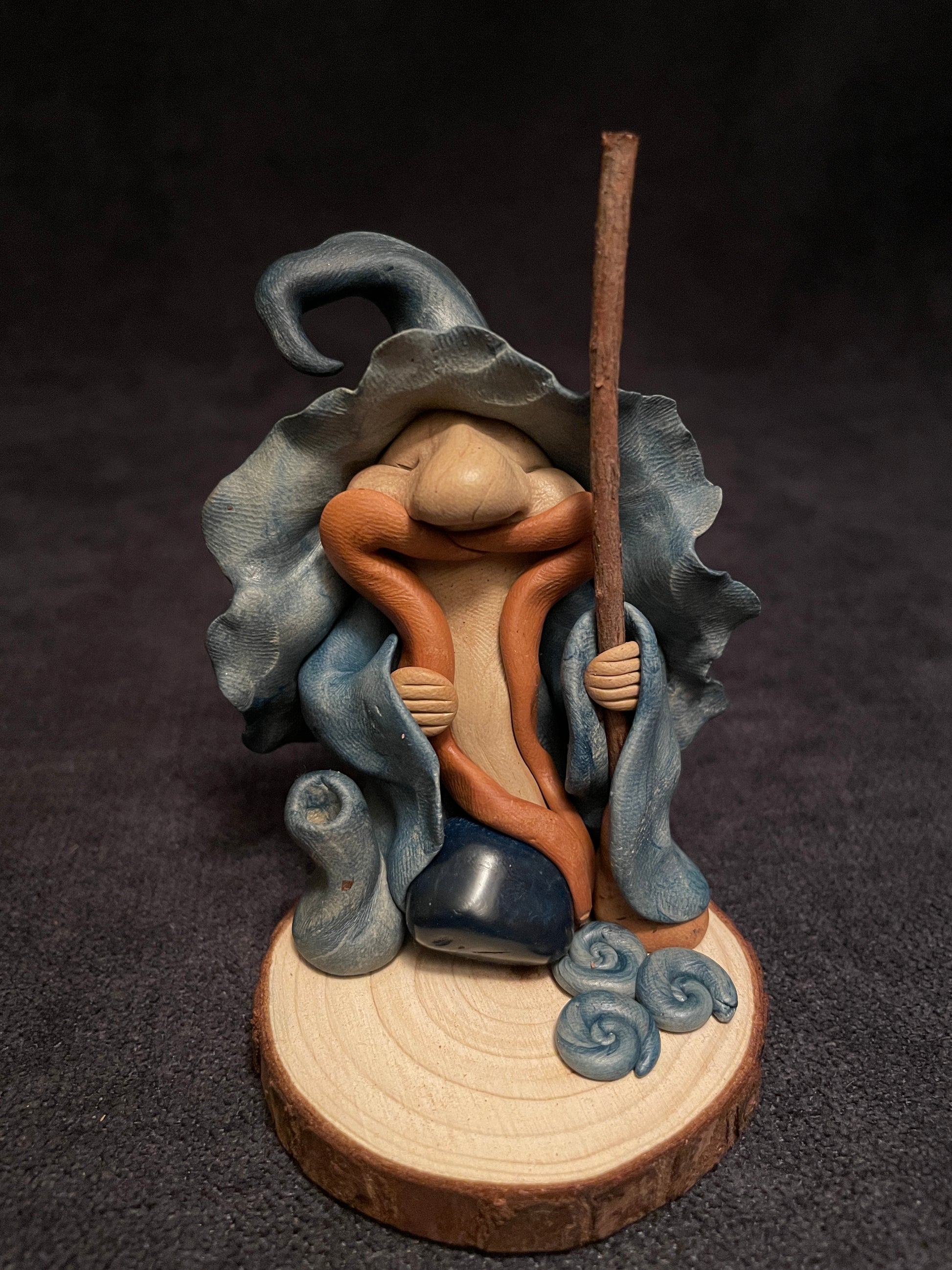 Je modèle ces druides en pâte autodurcissante. Chaque figurine est une pièce unique qui se distingue par son caractère, ses éléments naturels et sa singularité.