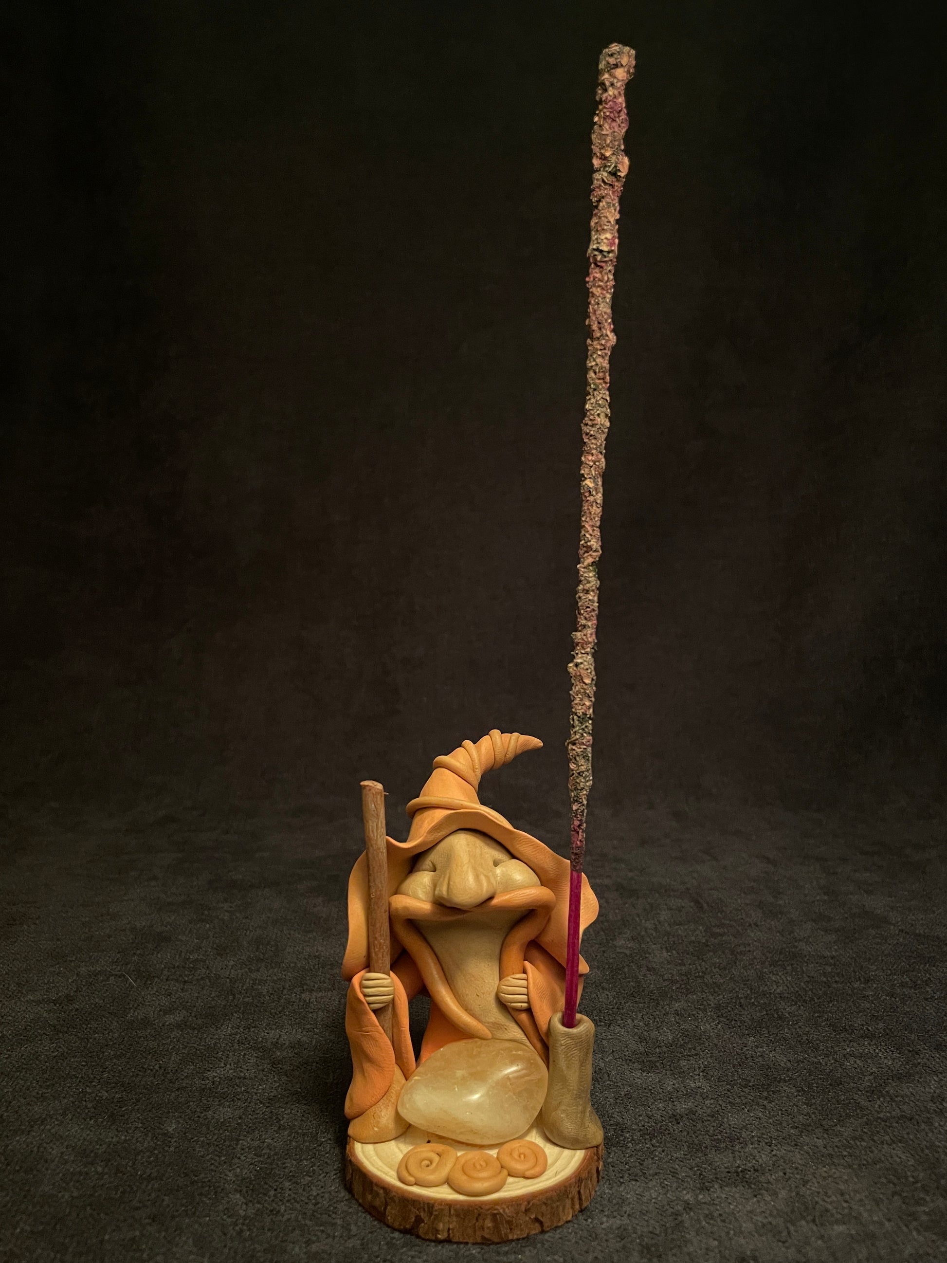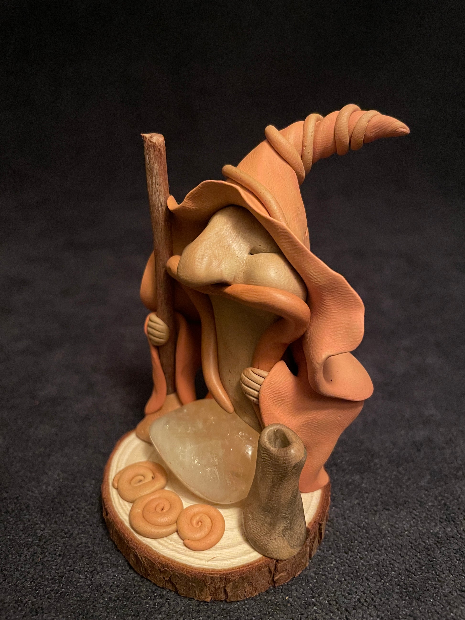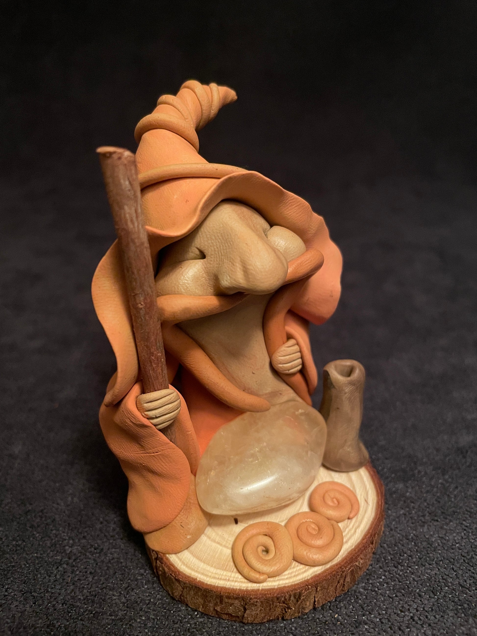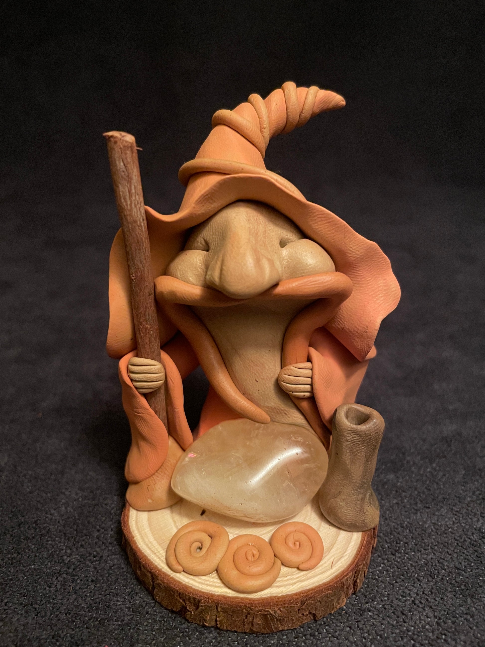 Je modèle ces druides en pâte autodurcissante. Chaque figurine est une pièce unique qui se distingue par son caractère, ses éléments naturels et sa singularité.