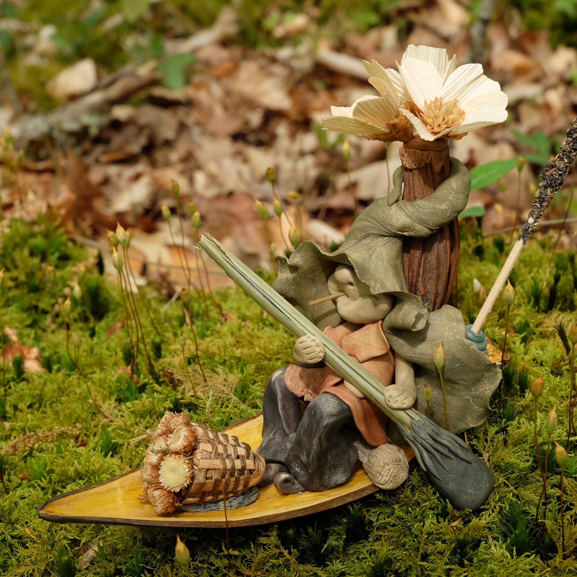 Diesen Wichtel habe ich aus selbsthärtendem Ton modelliert. Jede Figur ist ein Unikat, das sich durch seinen Charakter, seine natürlichen Elemente und seine Einzigartigkeit auszeichnet.