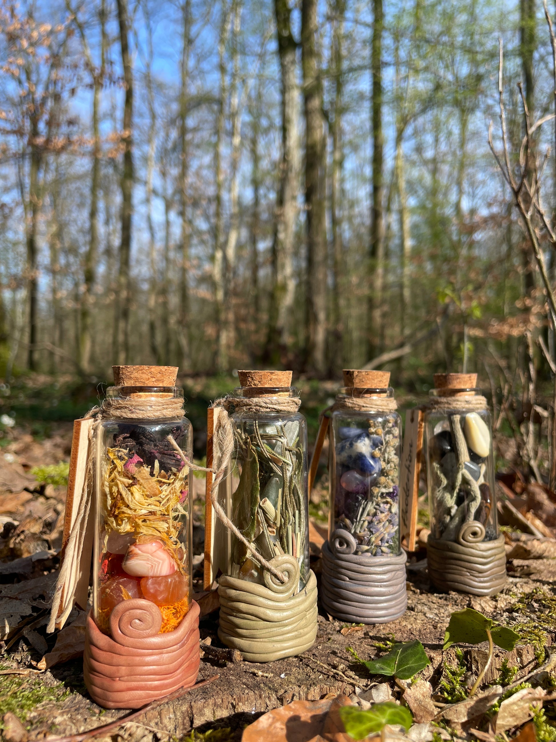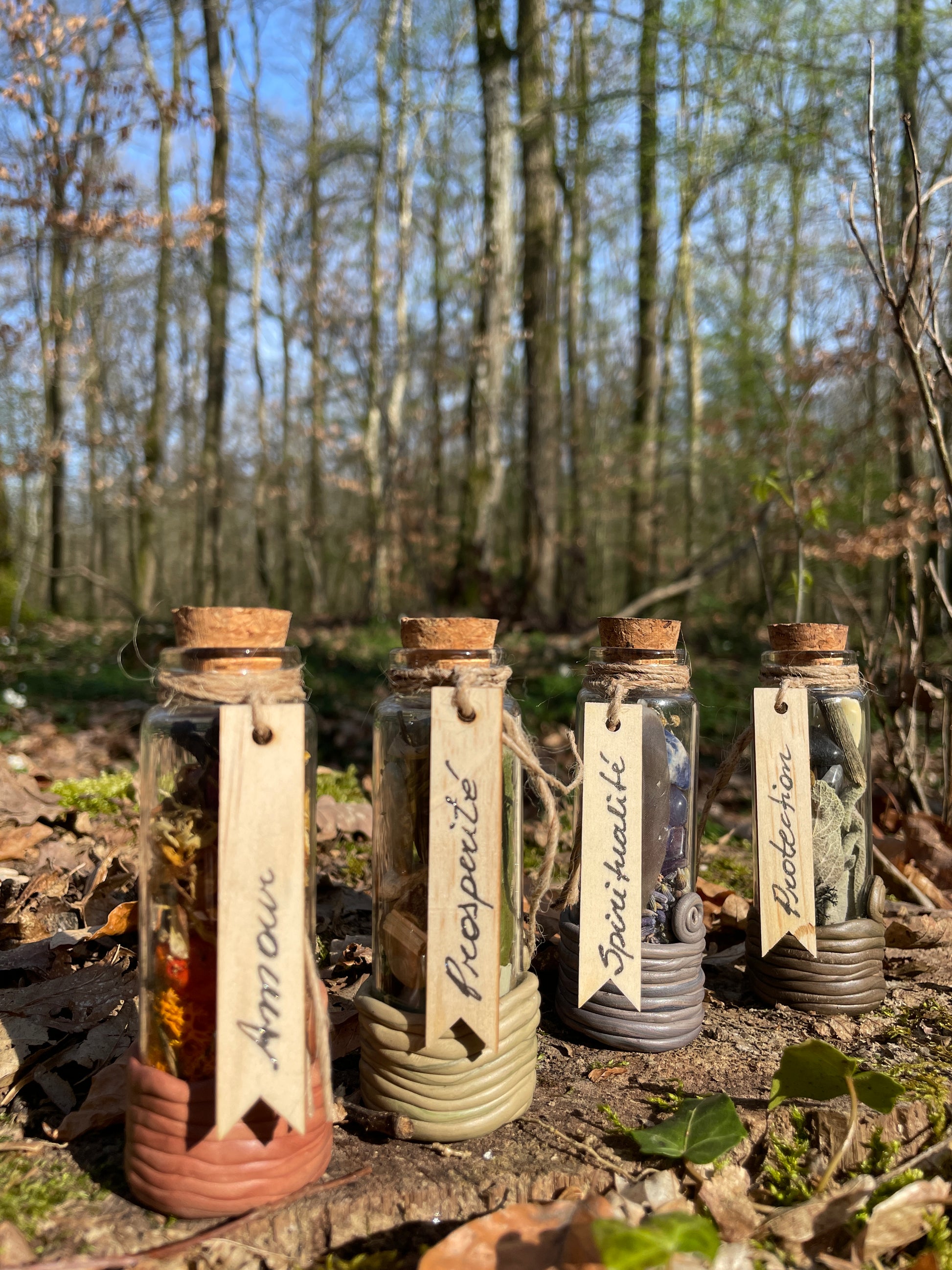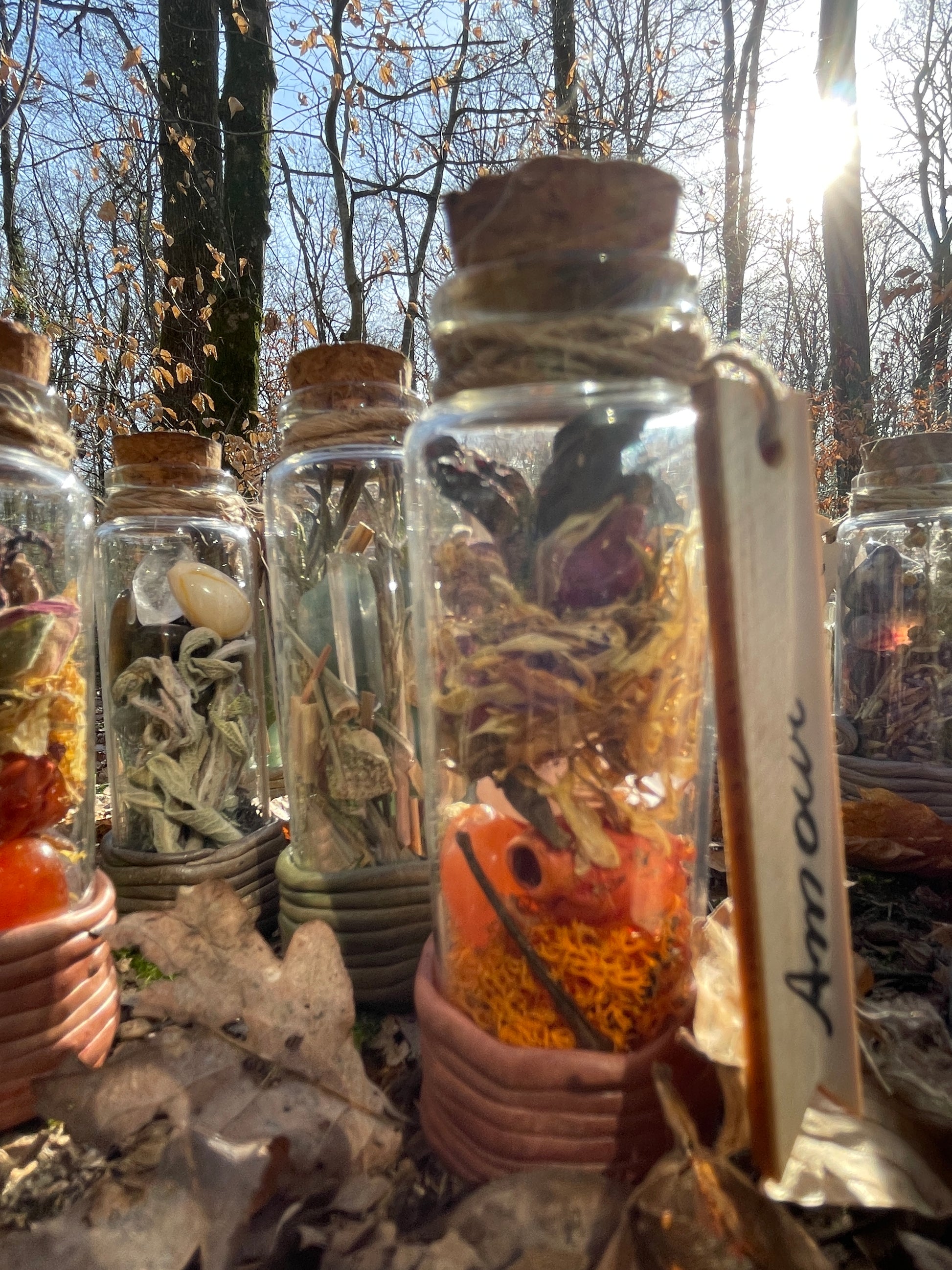 Chaque pot de sort contient des cristaux et des herbes afin de représenter l'intention du sort lui-même. Le bouchon est imbibé d'une huile essentielle alors ouvrez le et respirez profondément !