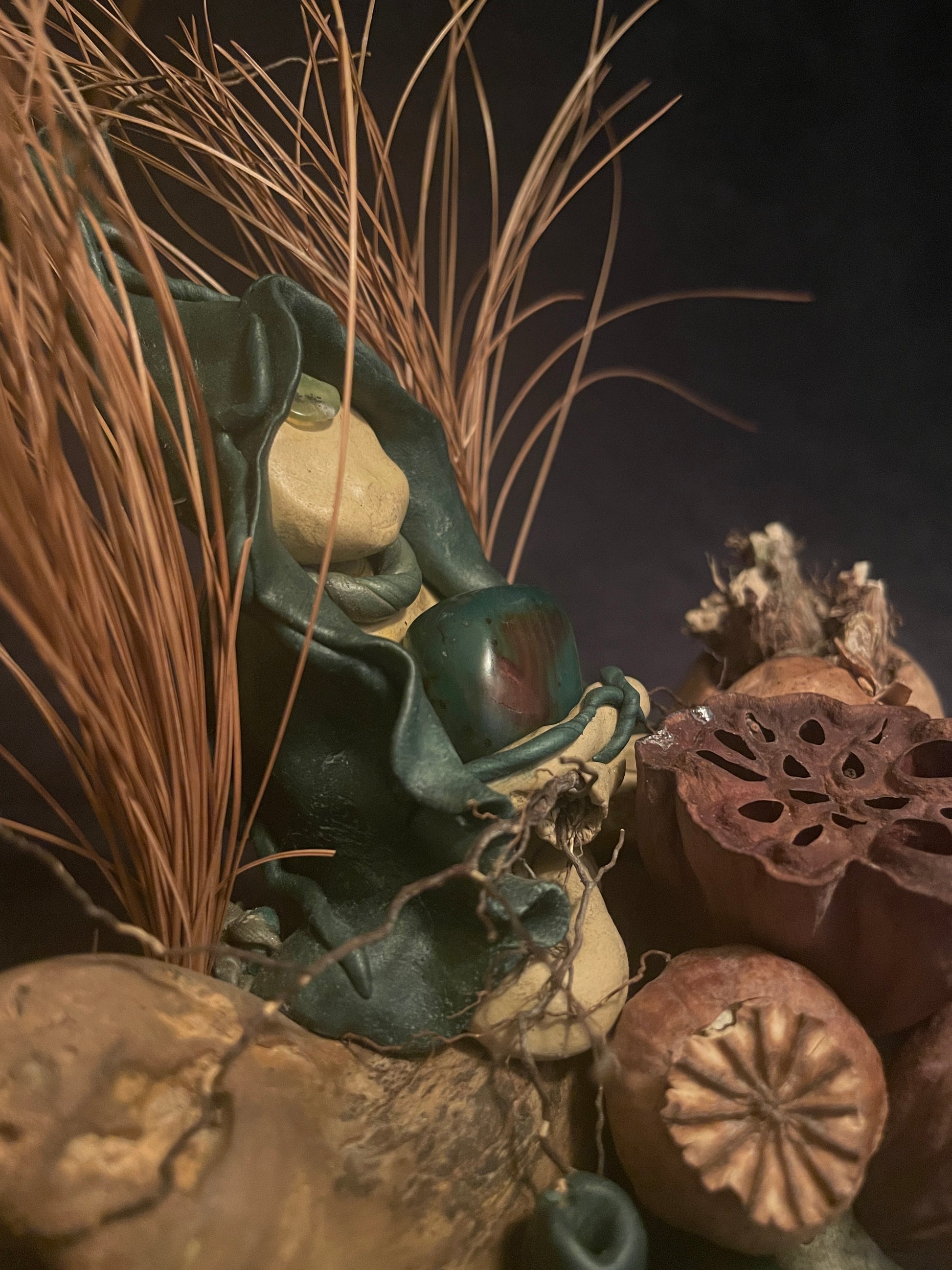 Diese Fee habe ich aus selbsthärtendem Ton modelliert. Jede Figur ist ein Unikat, das sich durch seinen Charakter, seine natürlichen Elemente und seine Einzigartigkeit auszeichnet.