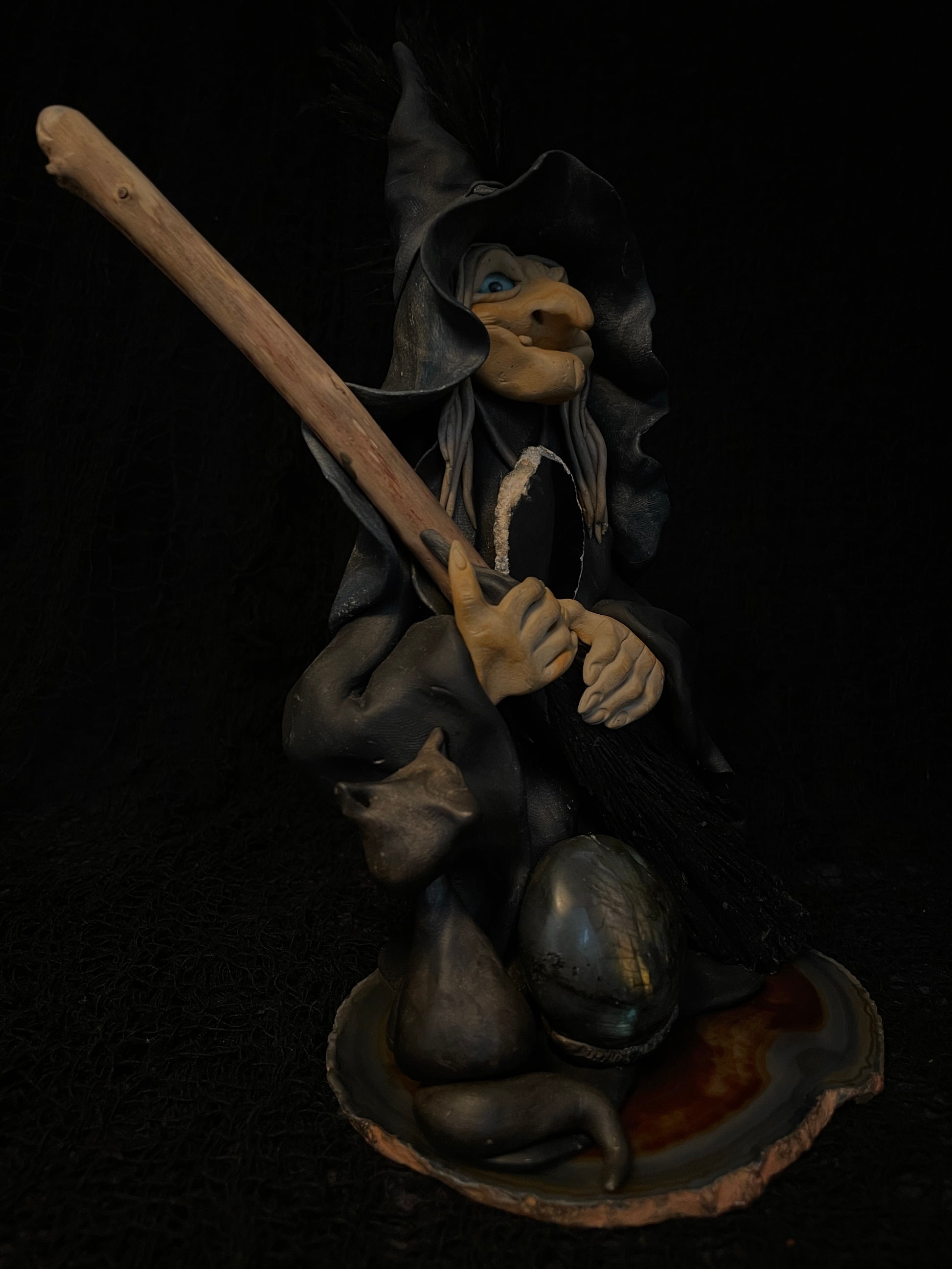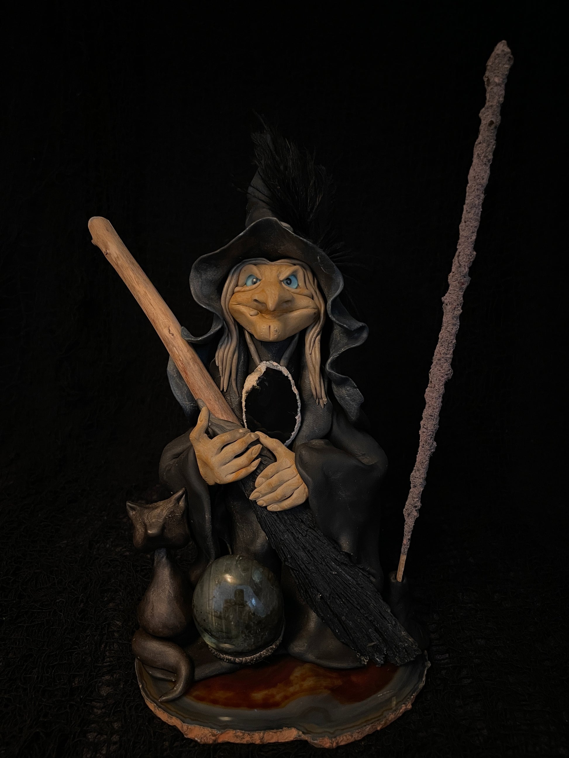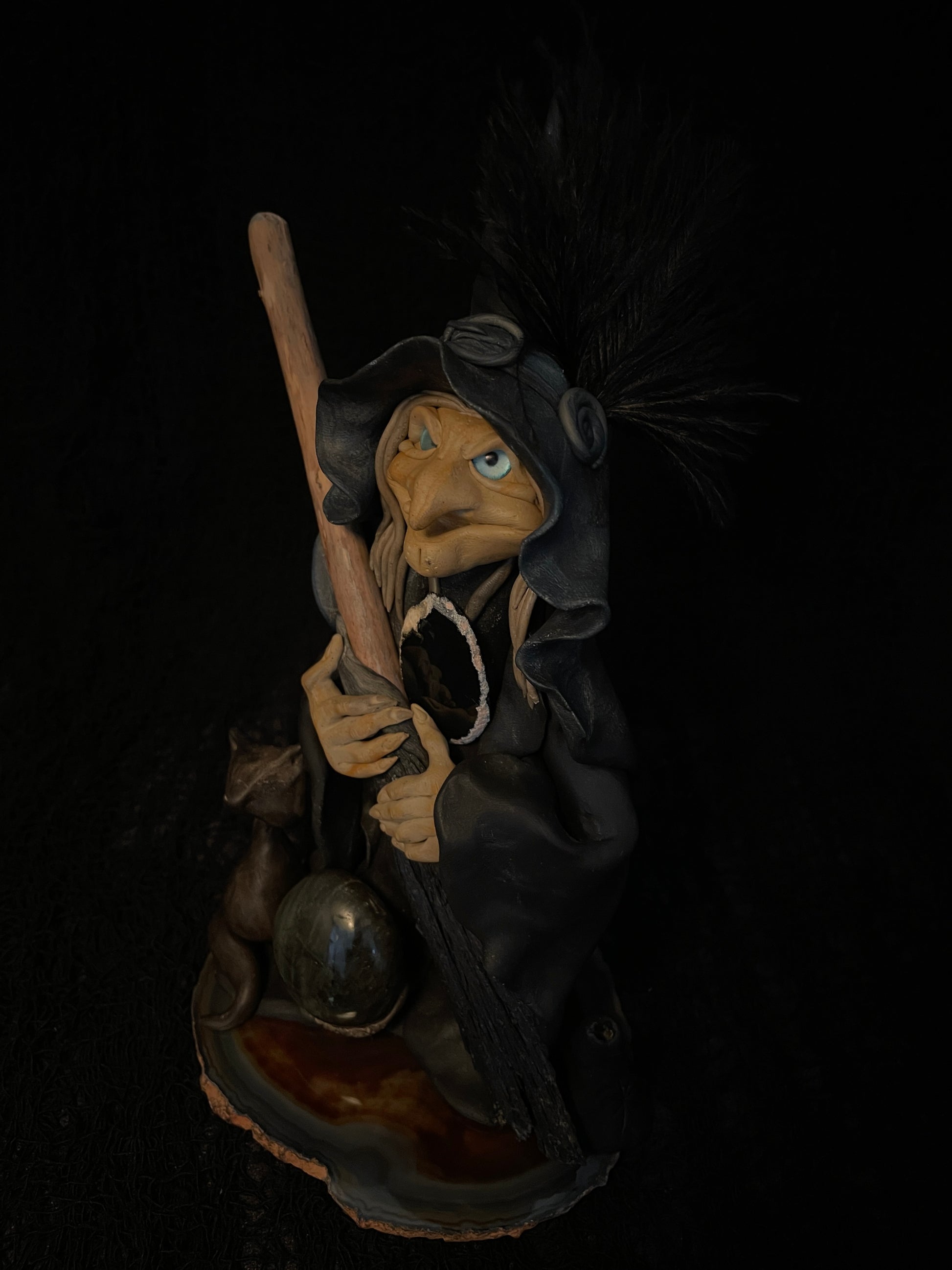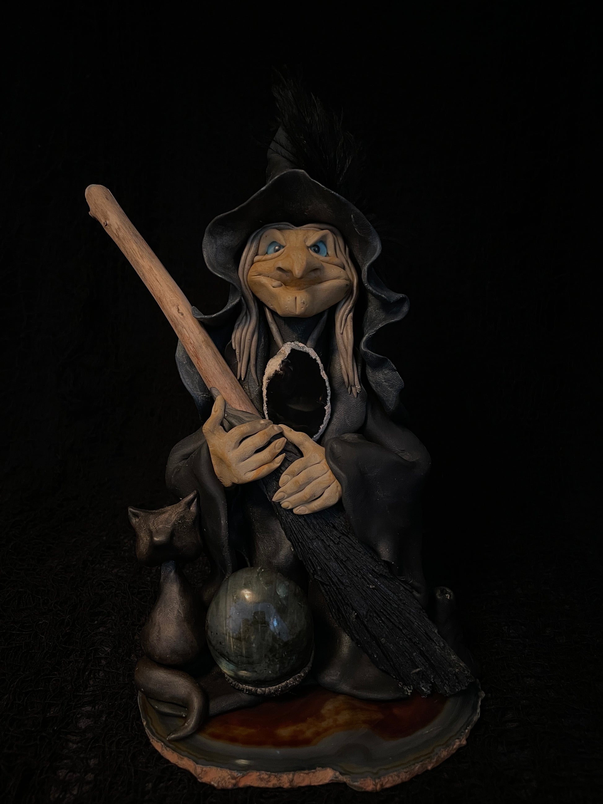 I modeled this witch in self-hardening clay. Each figurine is a unique piece that is distinguished by its character, its natural elements and its uniqueness.