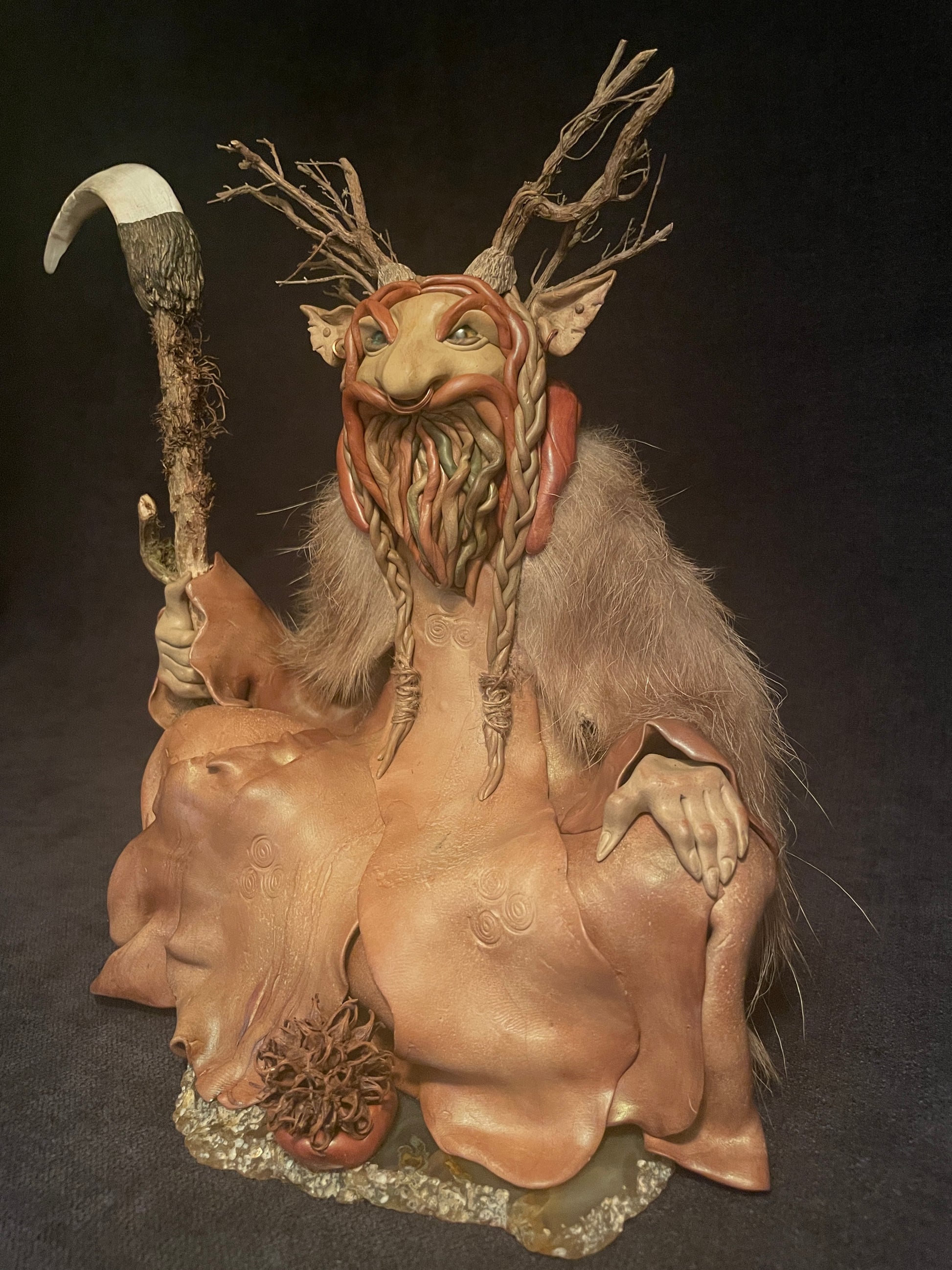 J'ai modelé ce druide en pâte autodurcissante. Chaque figurine est une pièce unique qui se distingue de par son caractère, ses éléments naturels et sa singularité.