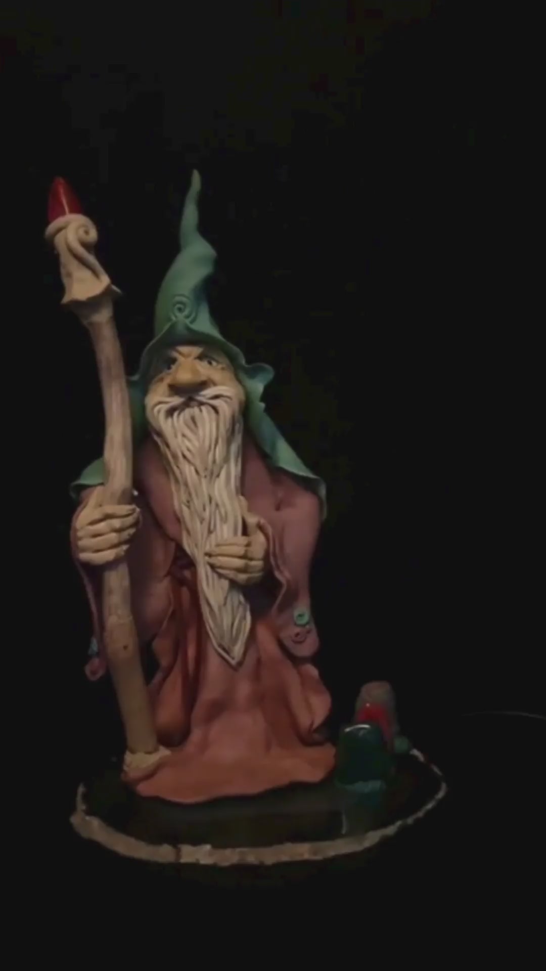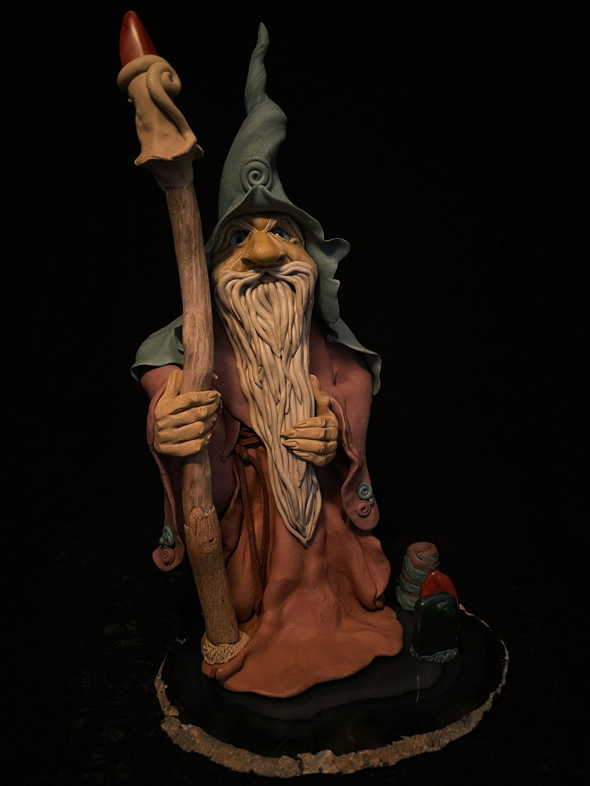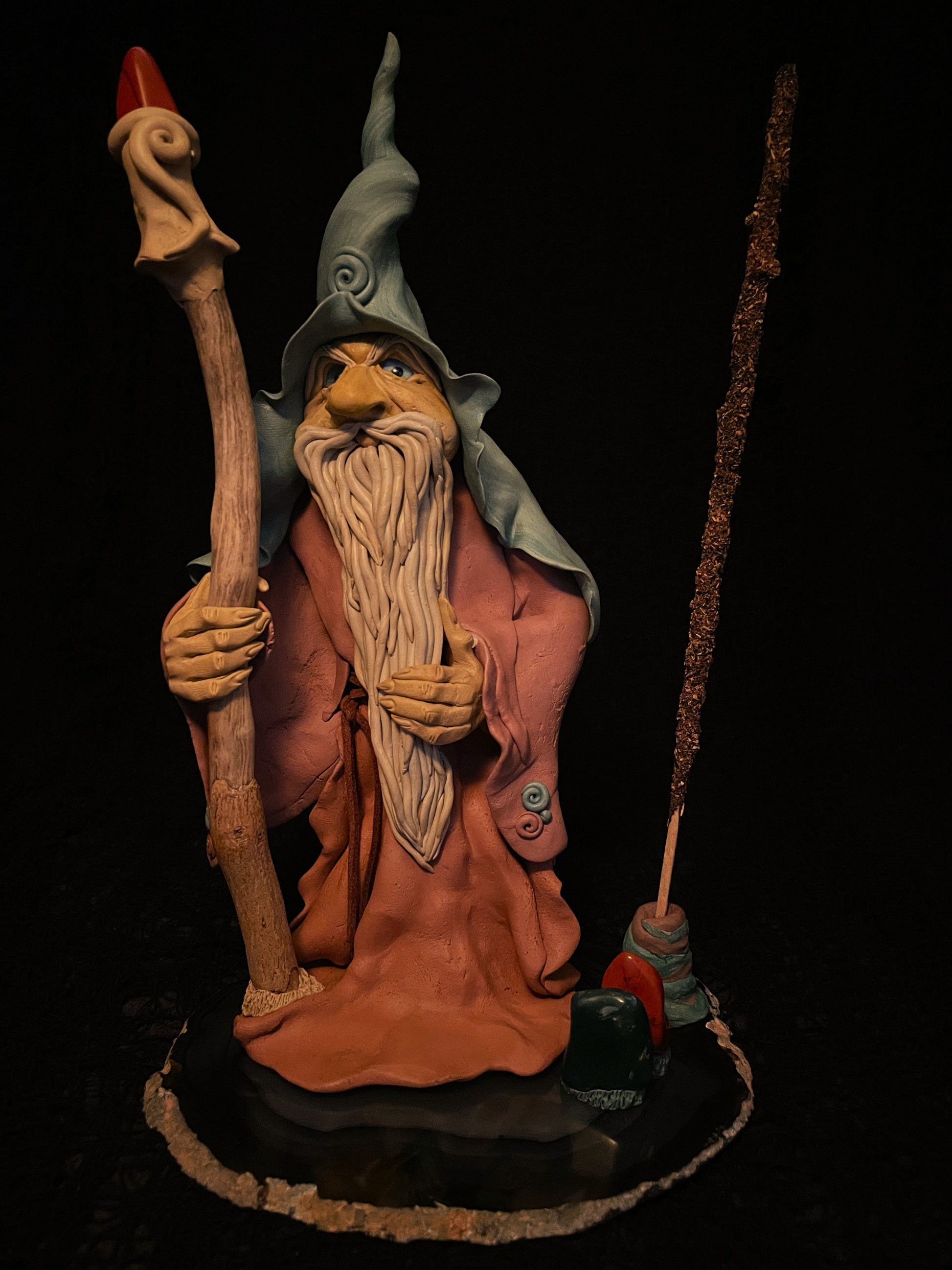 J'ai modelé ce druide en pâte autodurcissante. Chaque figurine est une pièce unique qui se distingue de par son caractère, ses éléments naturels et sa singularité.