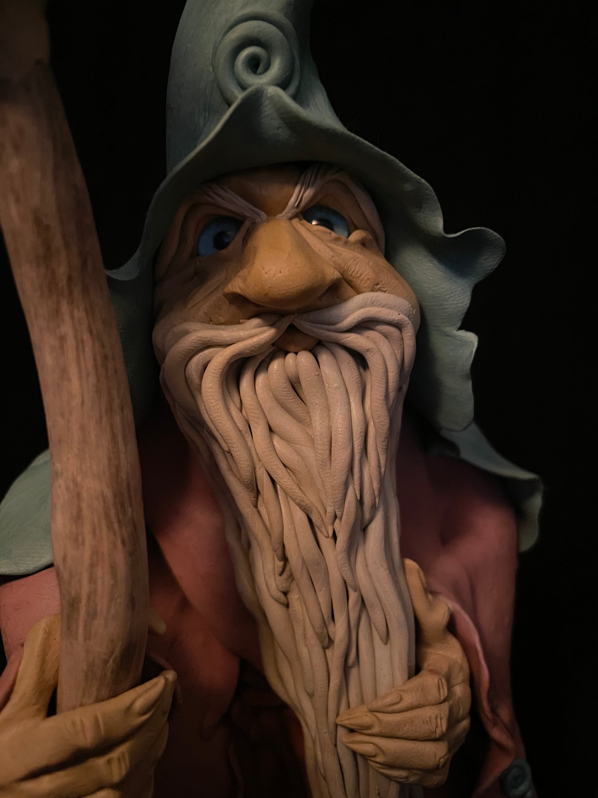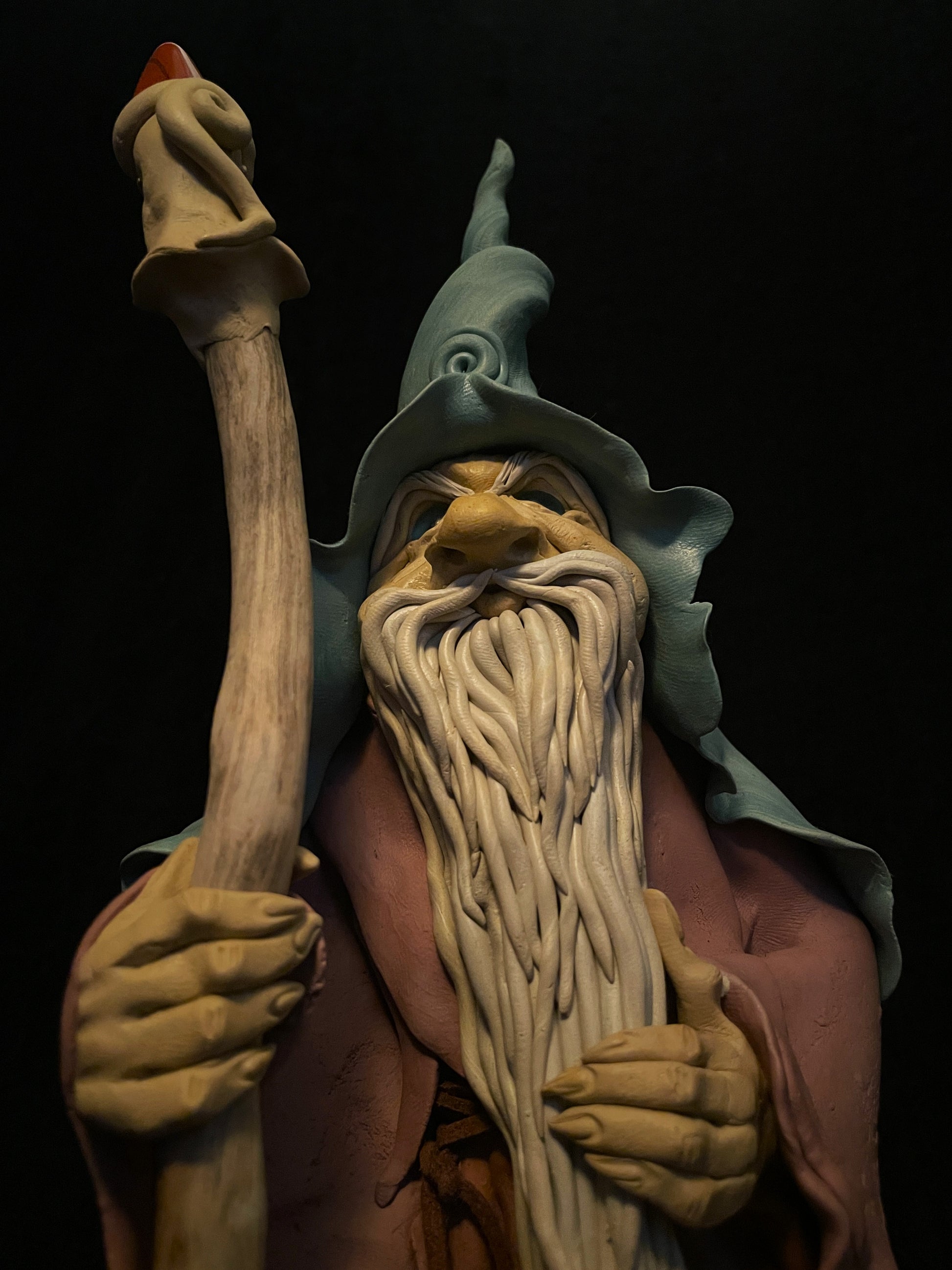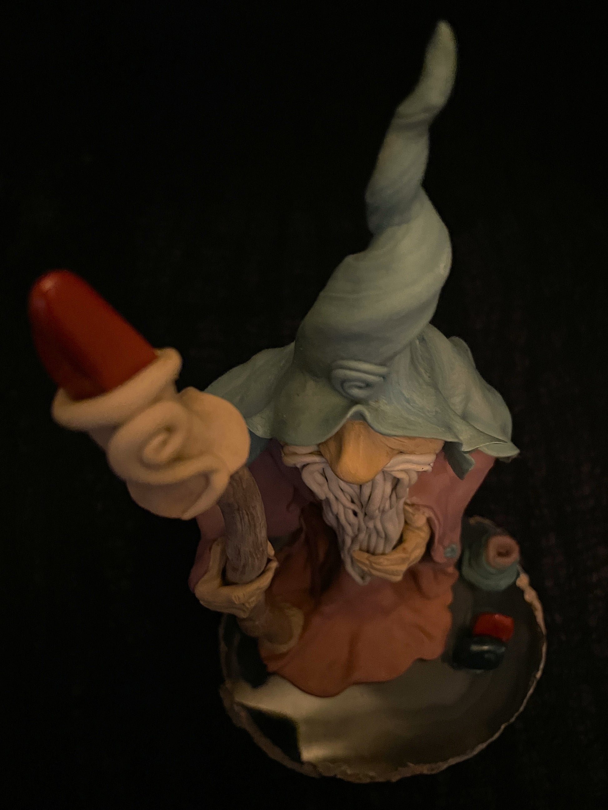 J'ai modelé ce druide en pâte autodurcissante. Chaque figurine est une pièce unique qui se distingue de par son caractère, ses éléments naturels et sa singularité.