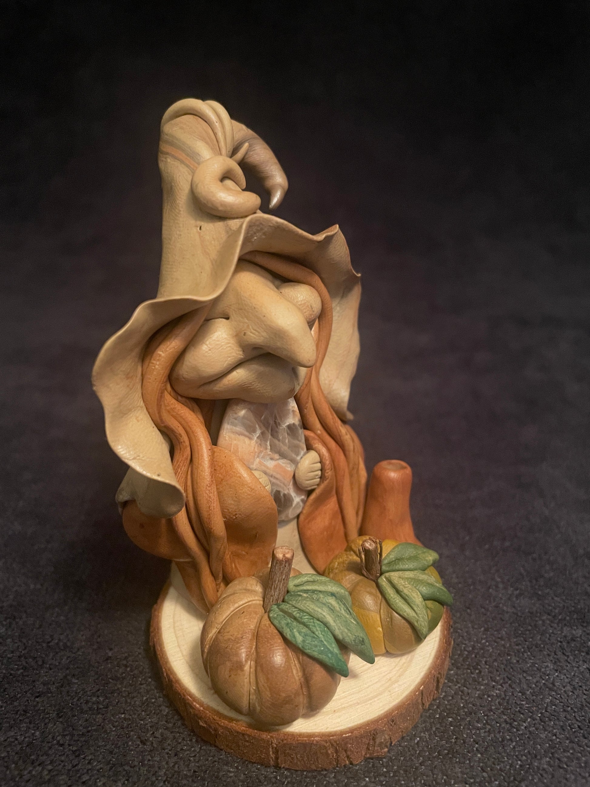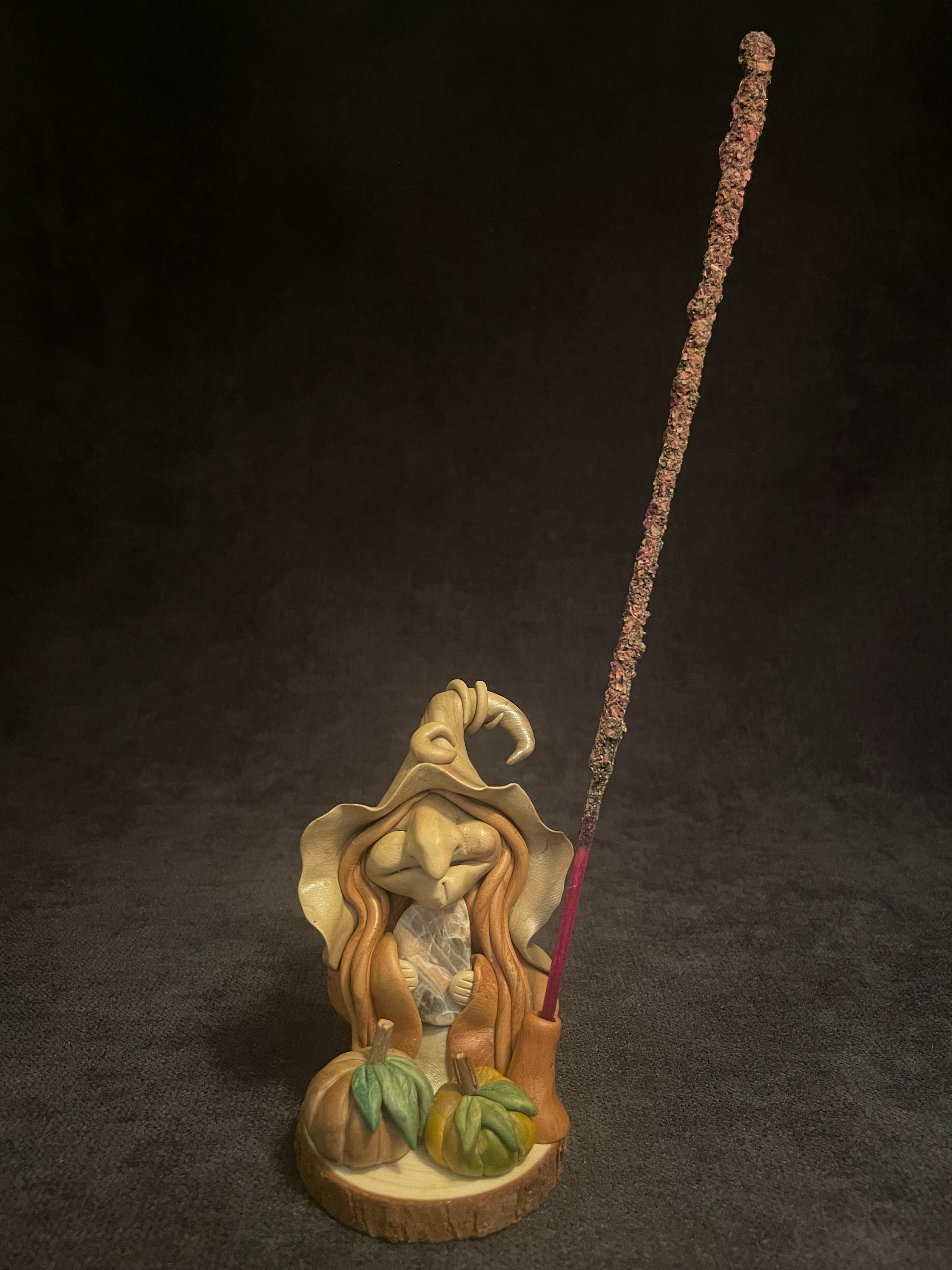 Je modèle ces sorcières en pâte autodurcissante. Chaque figurine est une pièce unique qui se distingue par son caractère, ses éléments naturels et sa singularité.