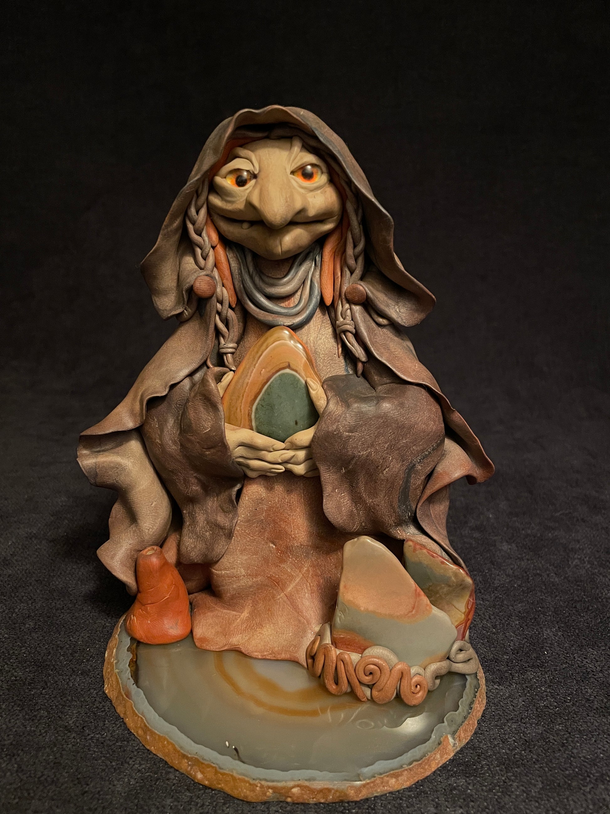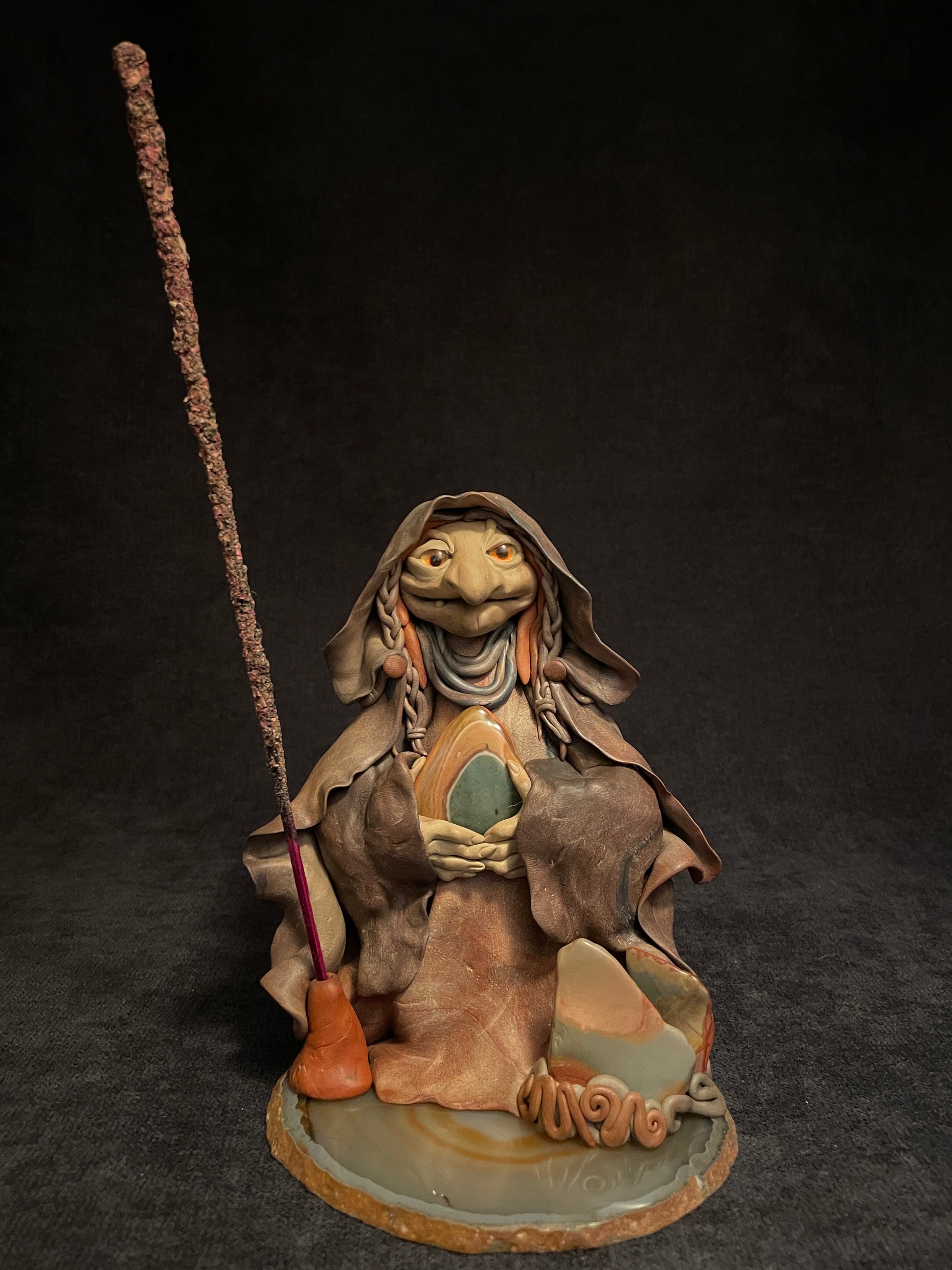 I modeled this witch in self-hardening clay. Each figurine is a unique piece that is distinguished by its character, its natural elements and its uniqueness.