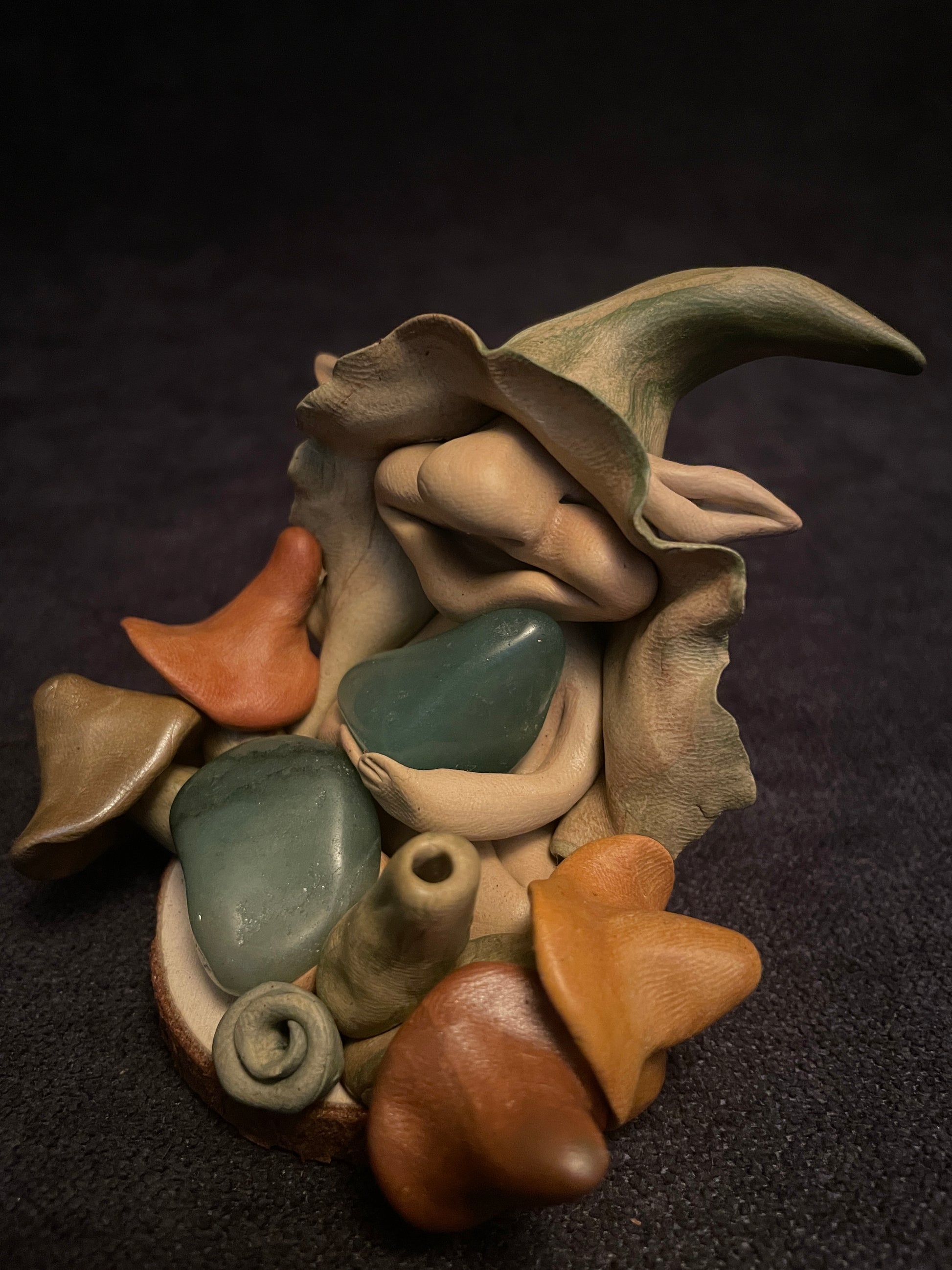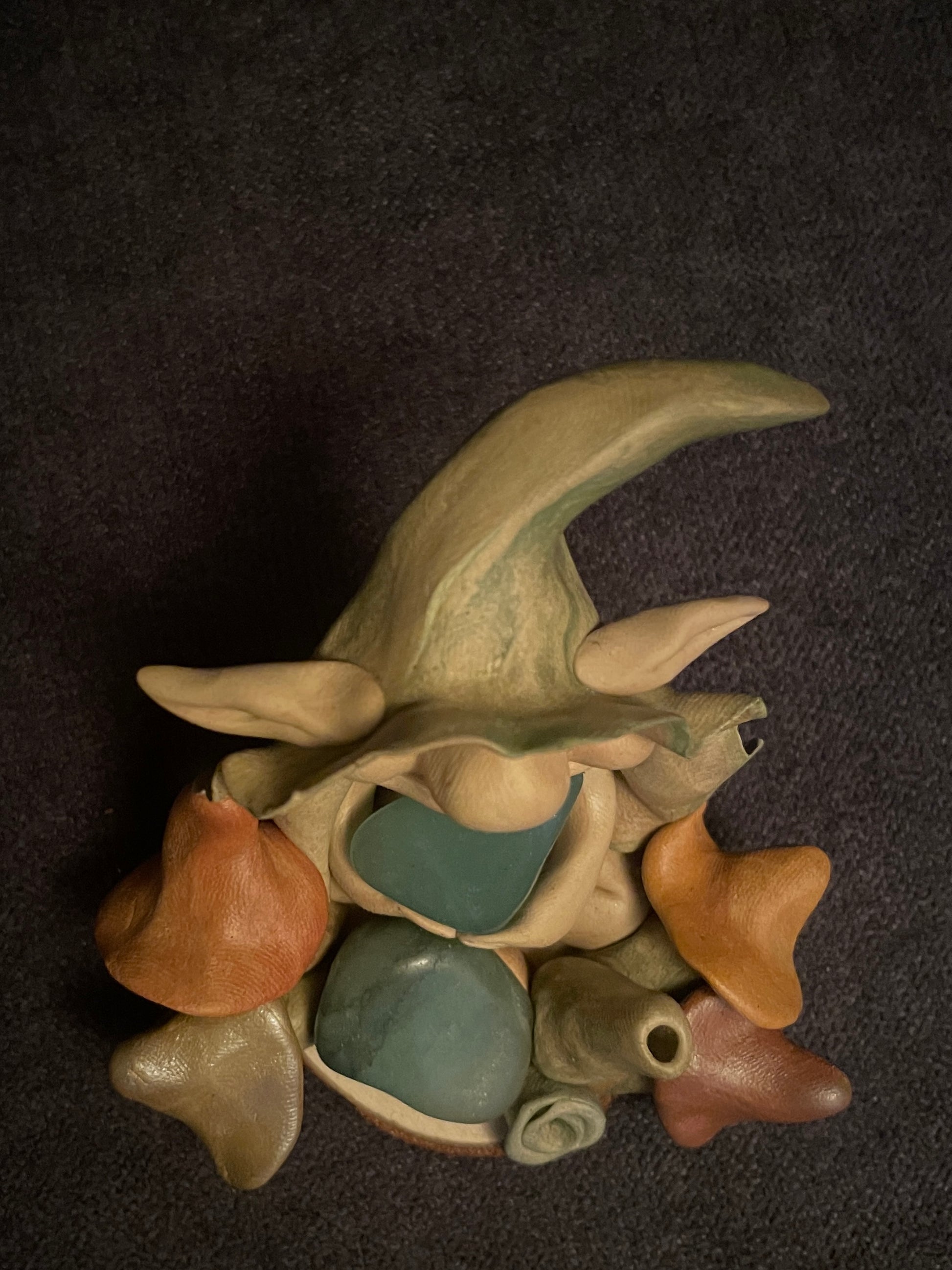 Je modèle ces lutins en pâte autodurcissante. Chaque figurine est une pièce unique qui se distingue selon son caractère, ses éléments naturels et sa singularité.