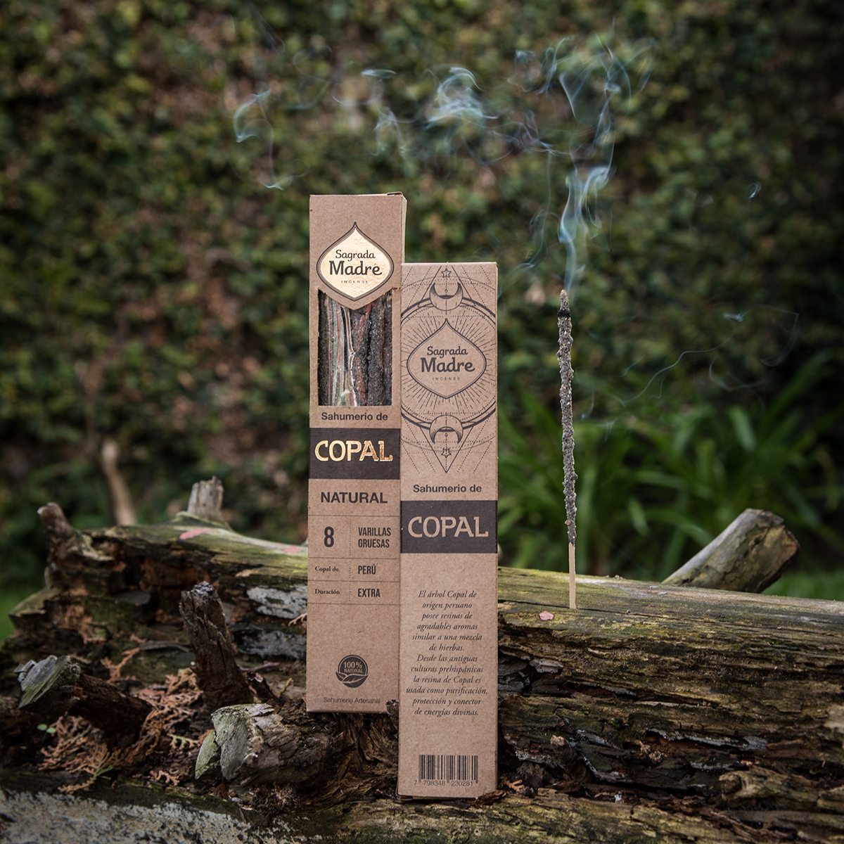 COPAL : Le Copal d'origine péruvienne possède des résines aux arômes agréables semblables à un mélange d'herbes. Depuis les anciennes cultures préhispaniques, la résine de Copal a été utilisée comme purification, protection et connecteur pour les énergies divines.
