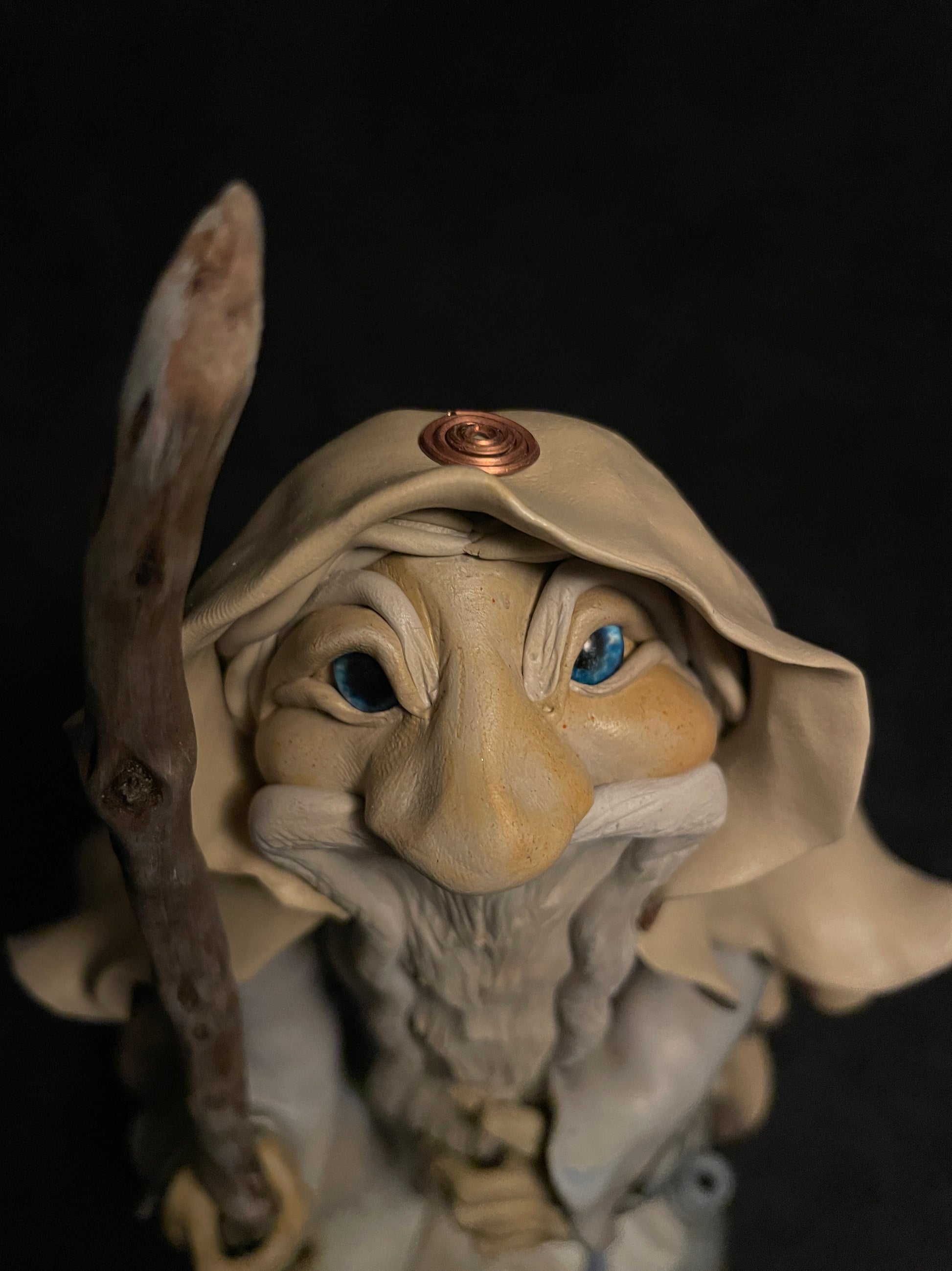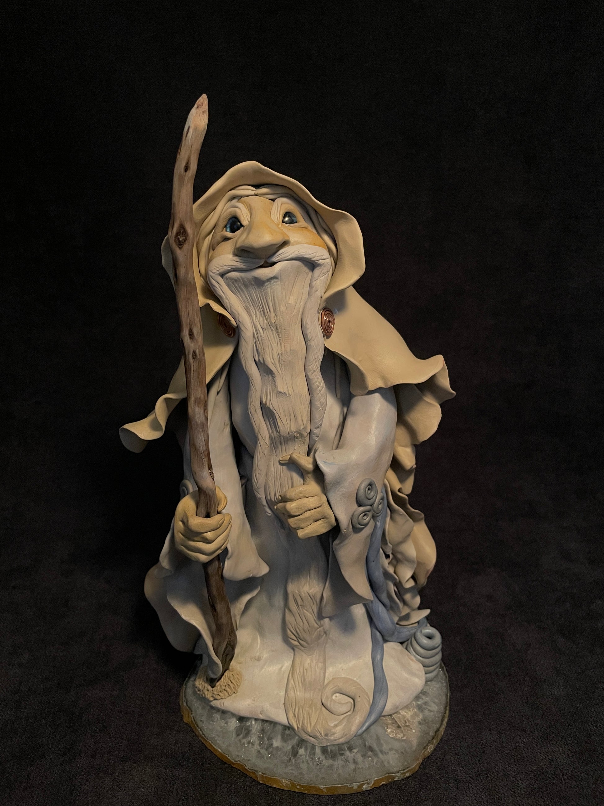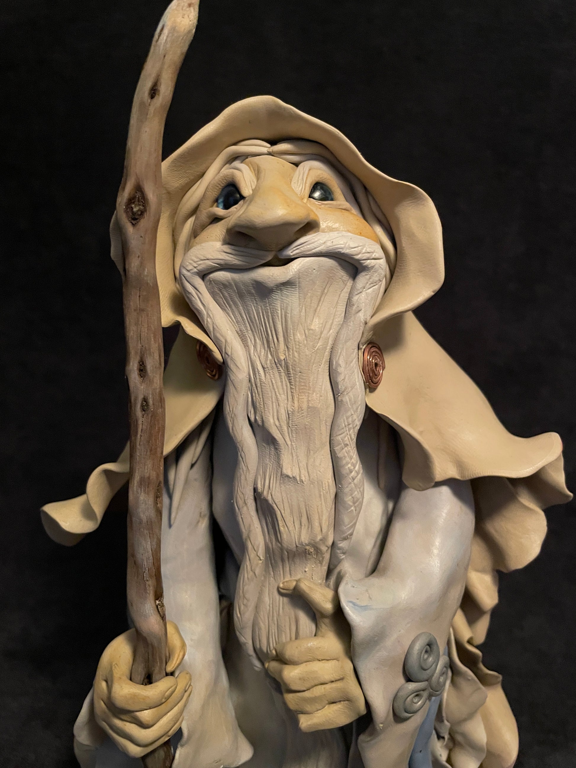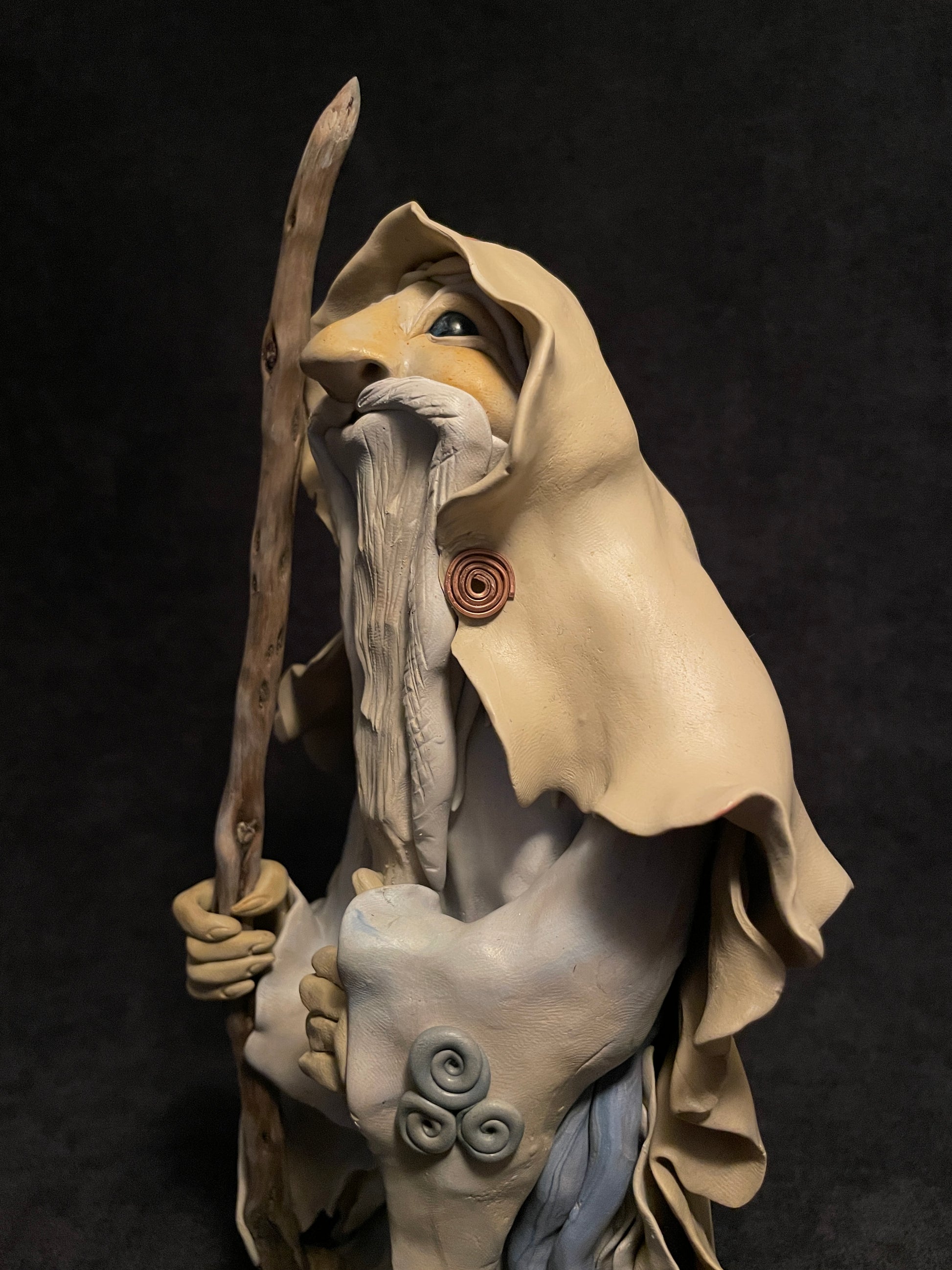J'ai modelé ce druide en pâte autodurcissante. Chaque figurine est une pièce unique qui se distingue de par son caractère, ses éléments naturels et sa singularité.