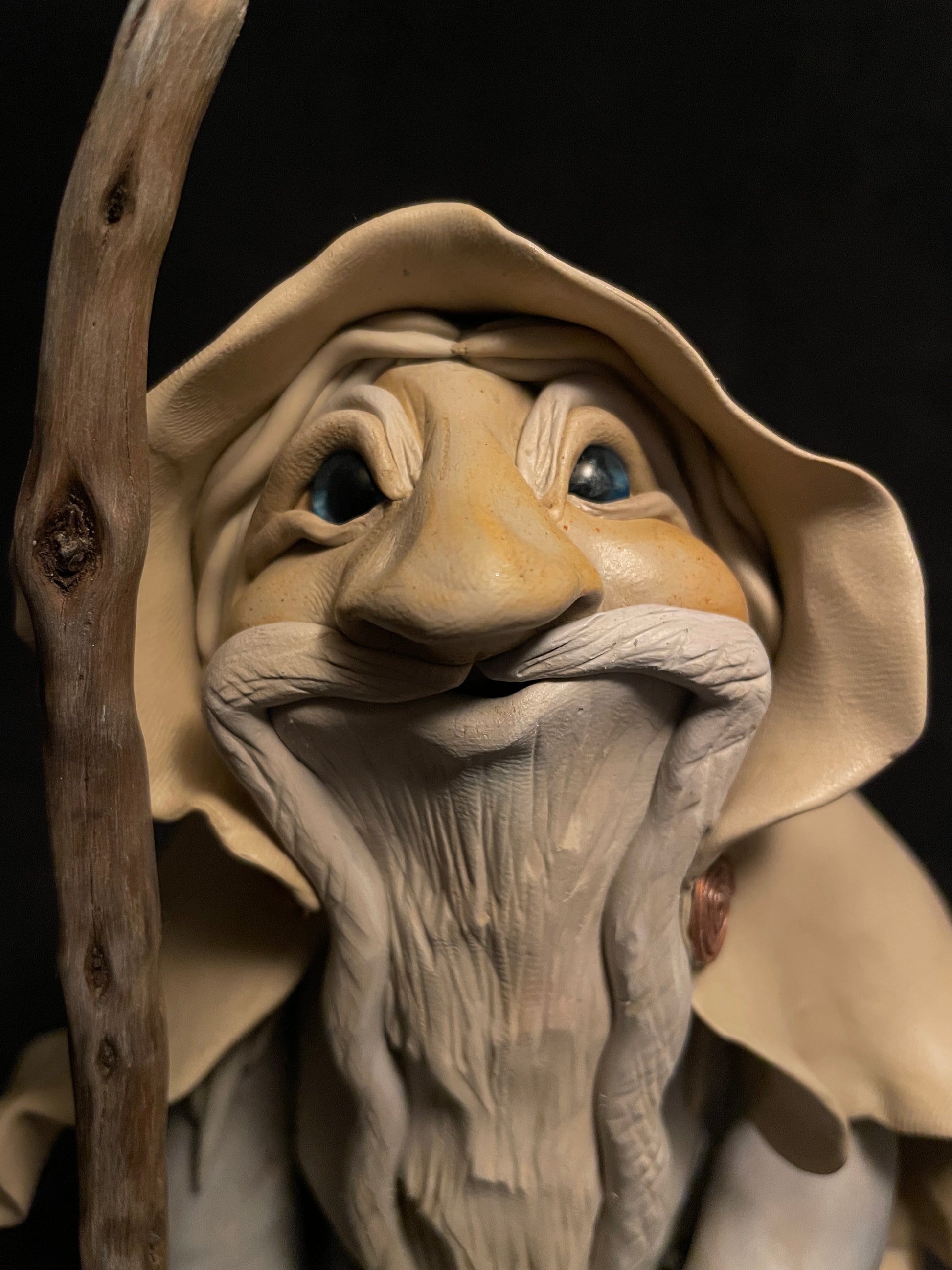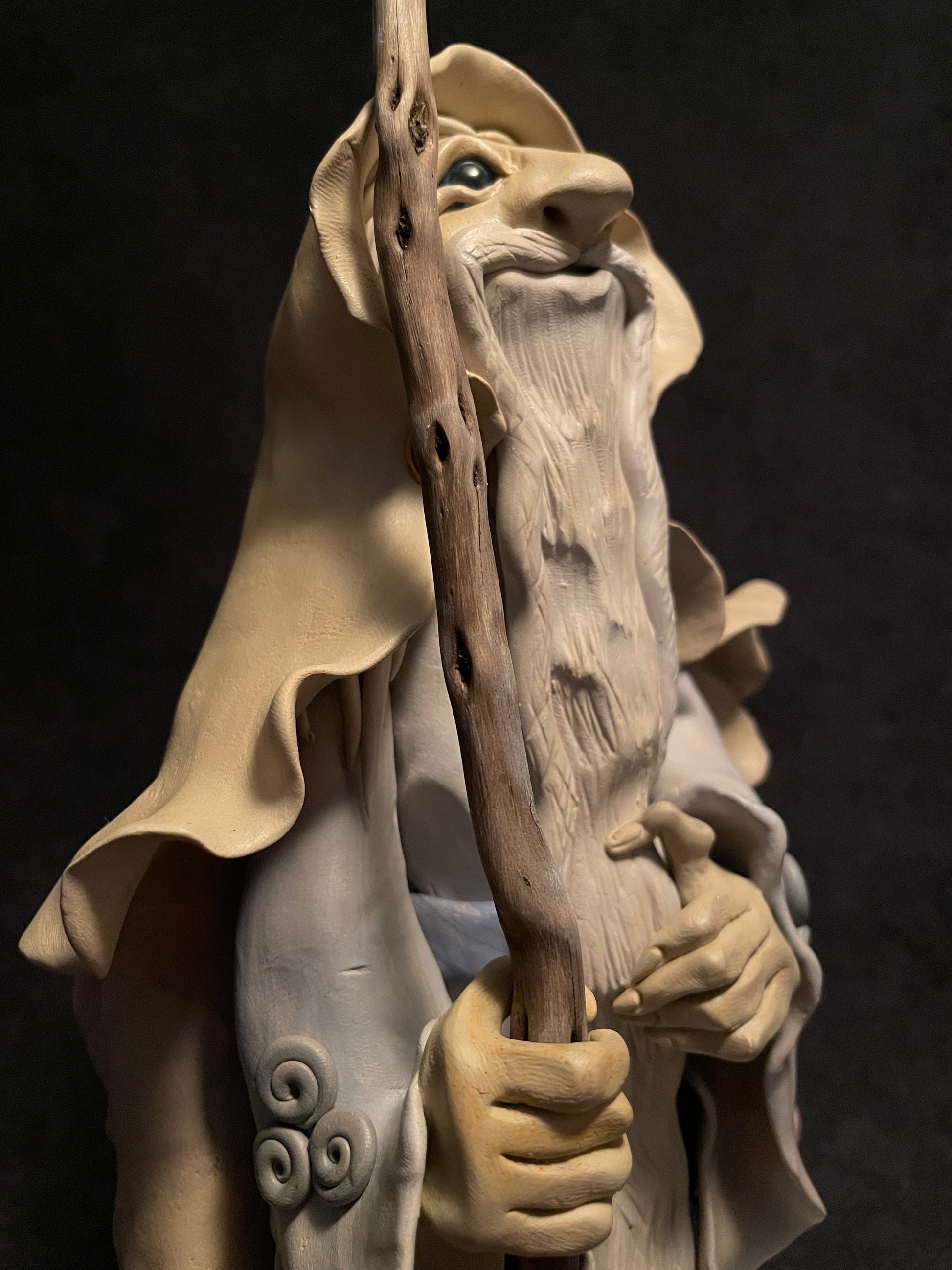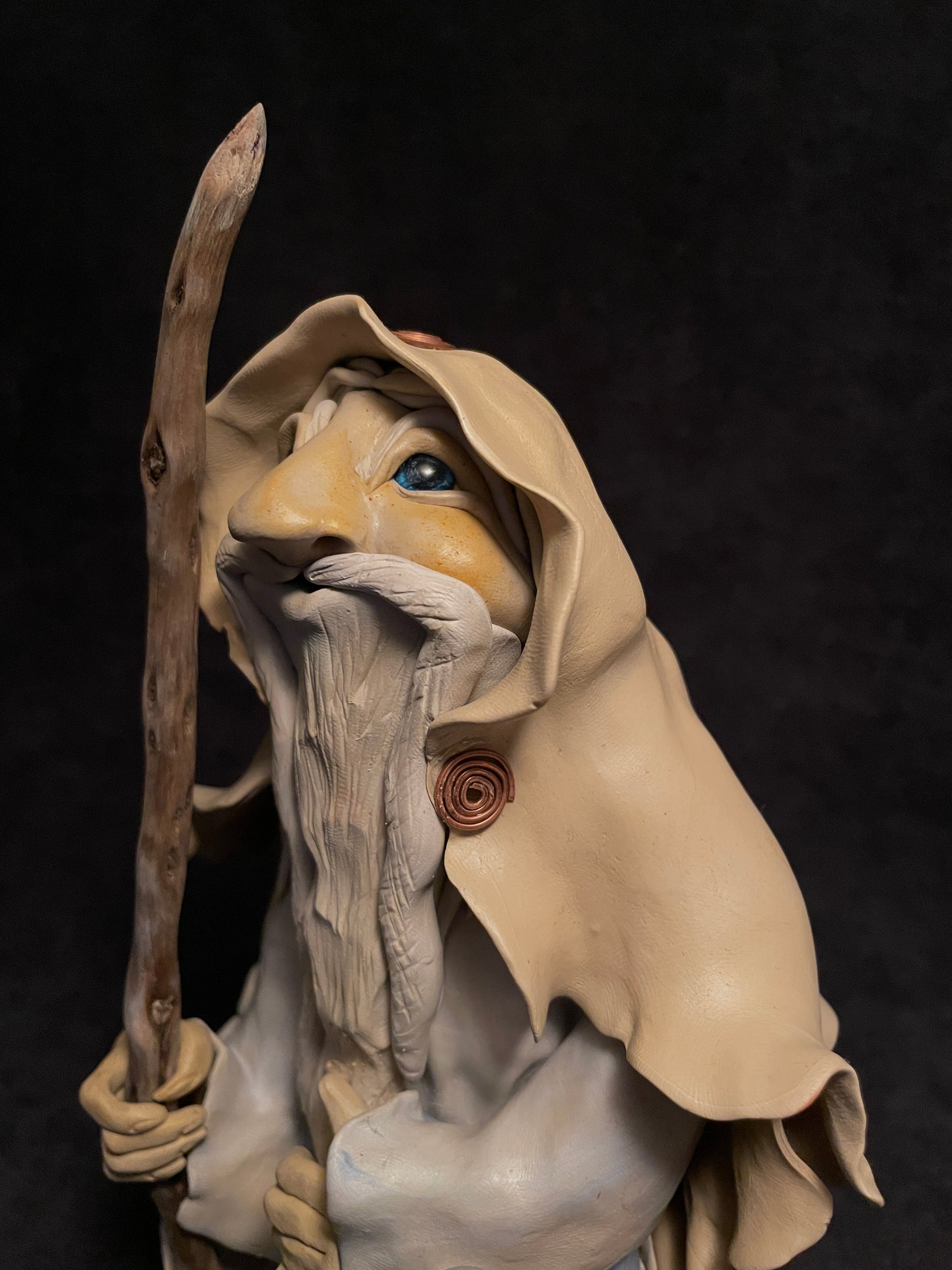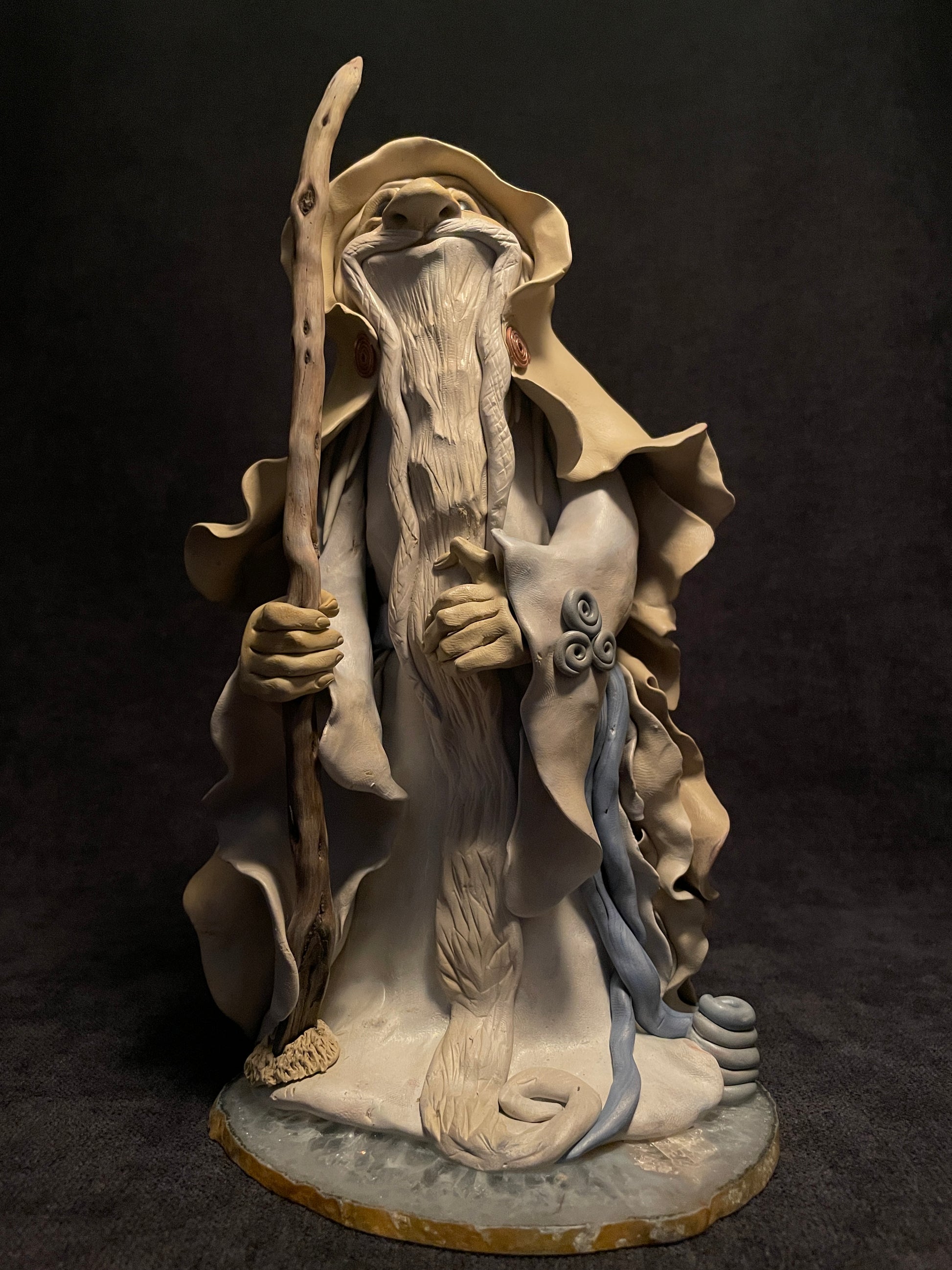 J'ai modelé ce druide en pâte autodurcissante. Chaque figurine est une pièce unique qui se distingue de par son caractère, ses éléments naturels et sa singularité.